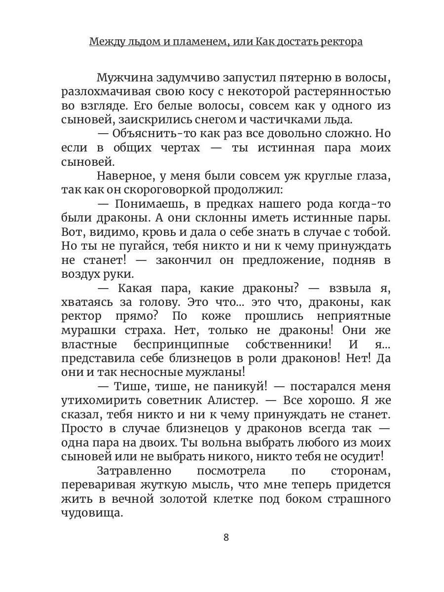 Handling time: 19 days Автор: Эллисон Юлия, «Между льдом и пламенем, или Как достать ректора. Книга 2»: Я всегда мечтала заниматься только наукой, стать великим ученым, разлить по колбочкам секрет вечной жизни, но в мою жизнь вдруг неожиданно ворвались два несносных, совершенно невозможных жениха, навязанных мне родителями. Они вдруг с чего-то решили, что если я являюсь их истинной парой, то просто обязана выйти за одного из них замуж по прошествии года помолвки. Да только вот они еще не поняли, с кем связались! Не на ту напали, женихи! Ну что, зададим им жару? А заодно, глядишь, и ректору моей любимой академии перепадет…