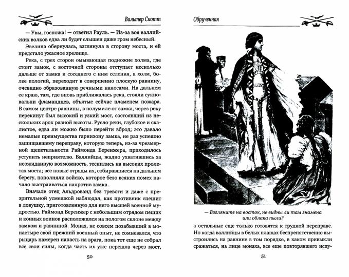 Handling time: 14 days XII век, Англия, эпоха "Льва зимой" - последние годы царствования Генриха II Плантагенета. Вражда между коренными валлийцами и напористыми норманнами раздирает страну на части. Но брошен клич, что в свете грядущего Третьего крестового похода нужно прекратить все междоусобицы и распри. Благородные и смелые рыцари - объединяйтесь! Ради великой цели, что ждет вас впереди, - ура!И вот уже валлийский князь Гуенуин, закусив ус и скрепя сердце, идет на мировую со своим заклятым недругом сэром Раймондом Беренжером. Приняв у себя норманнского гостя, князь готовит ответный визит к Беренжеру в его неприступный замок Печальный Дозор. Близится Рождество, но темные мысли не дают покоя валлийскому князю. Страшен камень за пазухой, а кинжал - в рукаве.В очередной том "Мастеров приключений" входит роман Вальтера Скотта "Обрученная" - первая сага из дилогии о крестоносцах. Здесь не водятся драконы, но есть предсказания и призраки, рыцари и менестрели, короли и шуты.