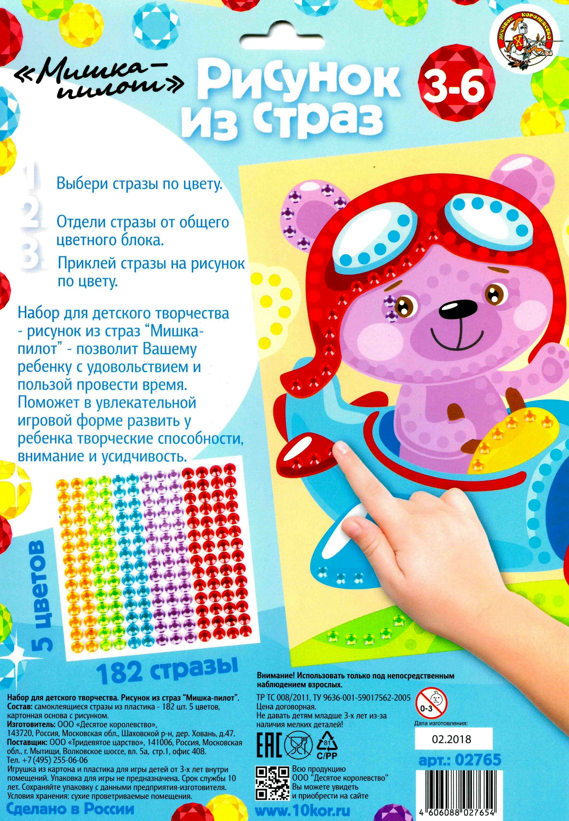 Набор для творчества. Risunok из страз "Мишка-пилот"