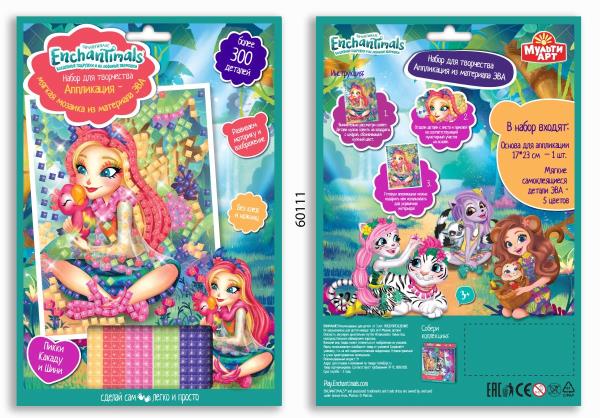 Набор д/детского тв-ва ЭНЧАНТИМАЛС аппликация мягкая мозаика (17х23 см) МУЛЬТИ АРТ в кор.100шт