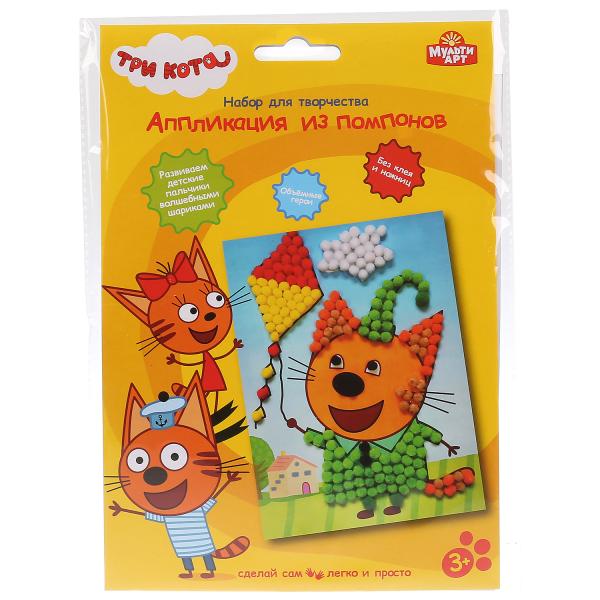 Набор д/тв-ва MultiArtАппликация из помпонов (17х23см) Три кота Компот в пак. в кор.48шт