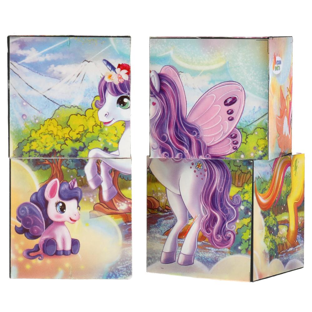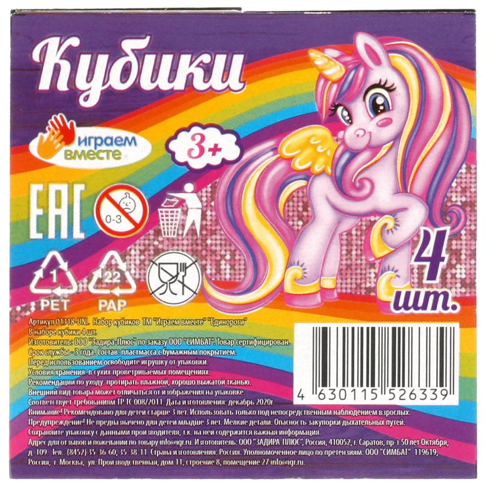 НАБОР ИЗ 4-И КУБИКОВ "ИГРАЕМ ВМЕСТЕ" ЕДИНОРОГИ, ПЛЕНКА в кор.80наб