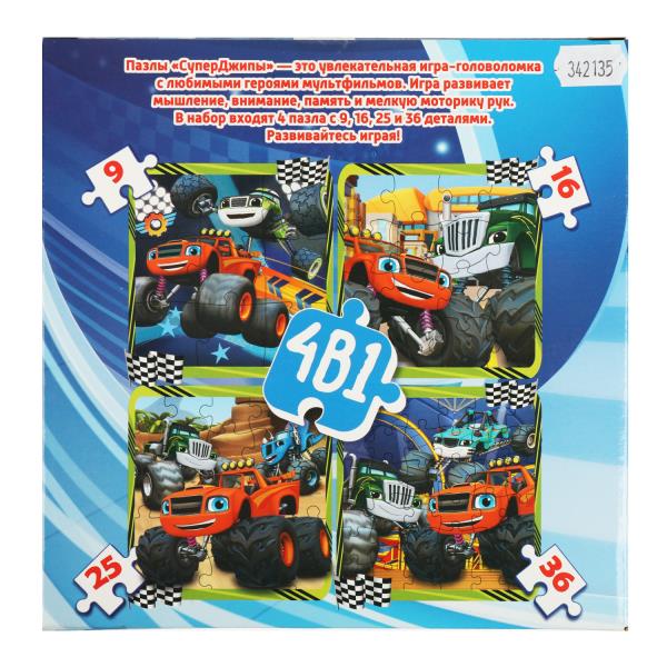 Набор пазлов 4в1 "Суперджипы" (9, 16, 25, 36 деталей). 175х175х50мм. Умные игры в кор.50шт