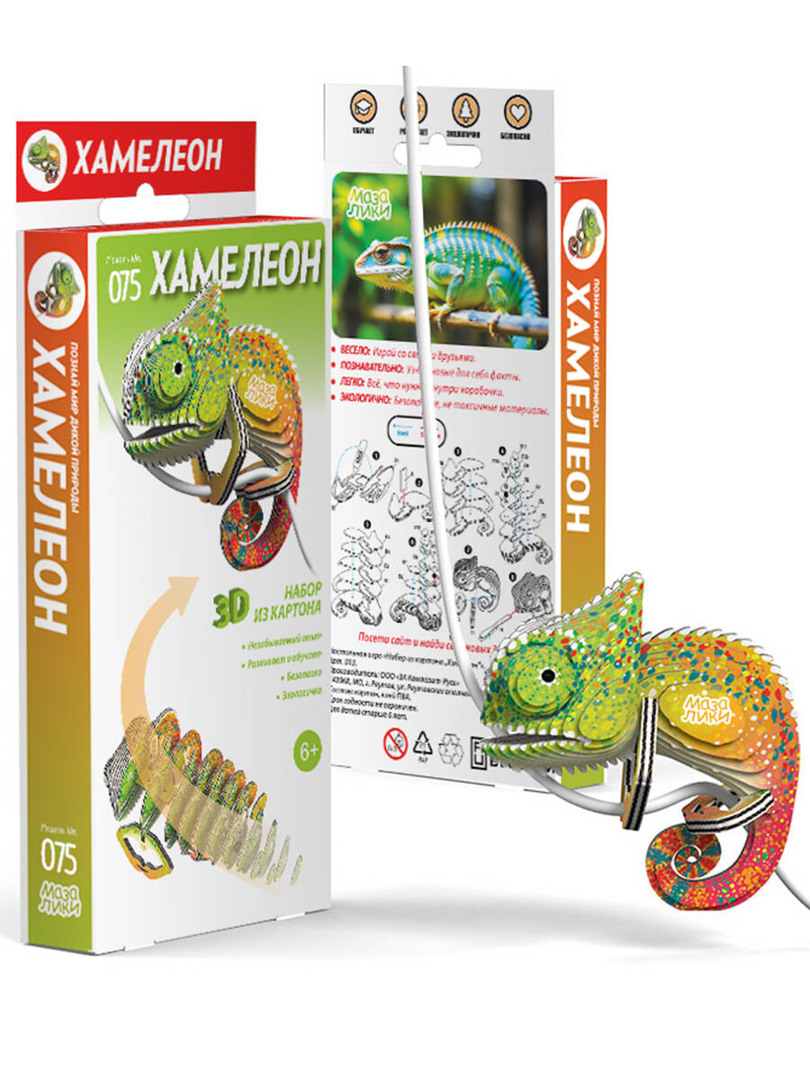 Handling time: 14 days Развивающие 3Д пазл "Мазалики" "075 Хамелеон". В комплекте есть все что нужно для сборки.Собирайте без труда и дополнительных инструментов.Вот что вы получите:Картонная коробка с информацией — 1 шт.Карточки с пронумерованными деталями — 7 шт.Тюбик клея, 5 мл — 1 шт.Бусинки-глазки в бумажном пакетике — 2 шт.Листовка с описанием.Добавьте яркости и индивидуальности вашему рабочему пространству с помощью пазла Хамелеон от Мазалики. Этот очаровательный паззл специально разработан для того, чтобы сидеть на углу вашего ноутбука, стола или на проводах, что делает его идеальным компаньоном для ваших ежедневных приключений. Его яркие цвета и завораживающие глаза мгновенно скрасят ваш день и оживят беседу с коллегами.Как и настоящие хамелеоны, эта головоломка символизирует адаптивность и коммуникабельность. Воспользуйтесь способностью хамелеона меняться и выражать свои истинные цвета с помощью этой восхитительной головоломки. Пусть это вдохновит вас принять новые вызовы и быть открытыми для изменений.