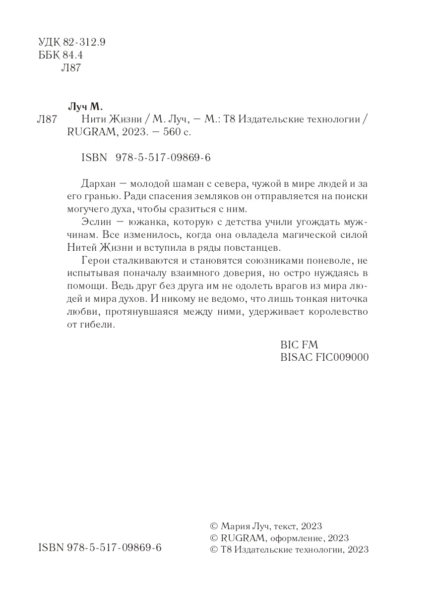 Handling time: 19 days Автор: Луч Мария, «Нити Жизни»: Дархан — молодой шаман с севера, чужой в мире людей и за его гранью. Ради спасения земляков он отправляется на поиски могучего духа, чтобы сразиться с ним.