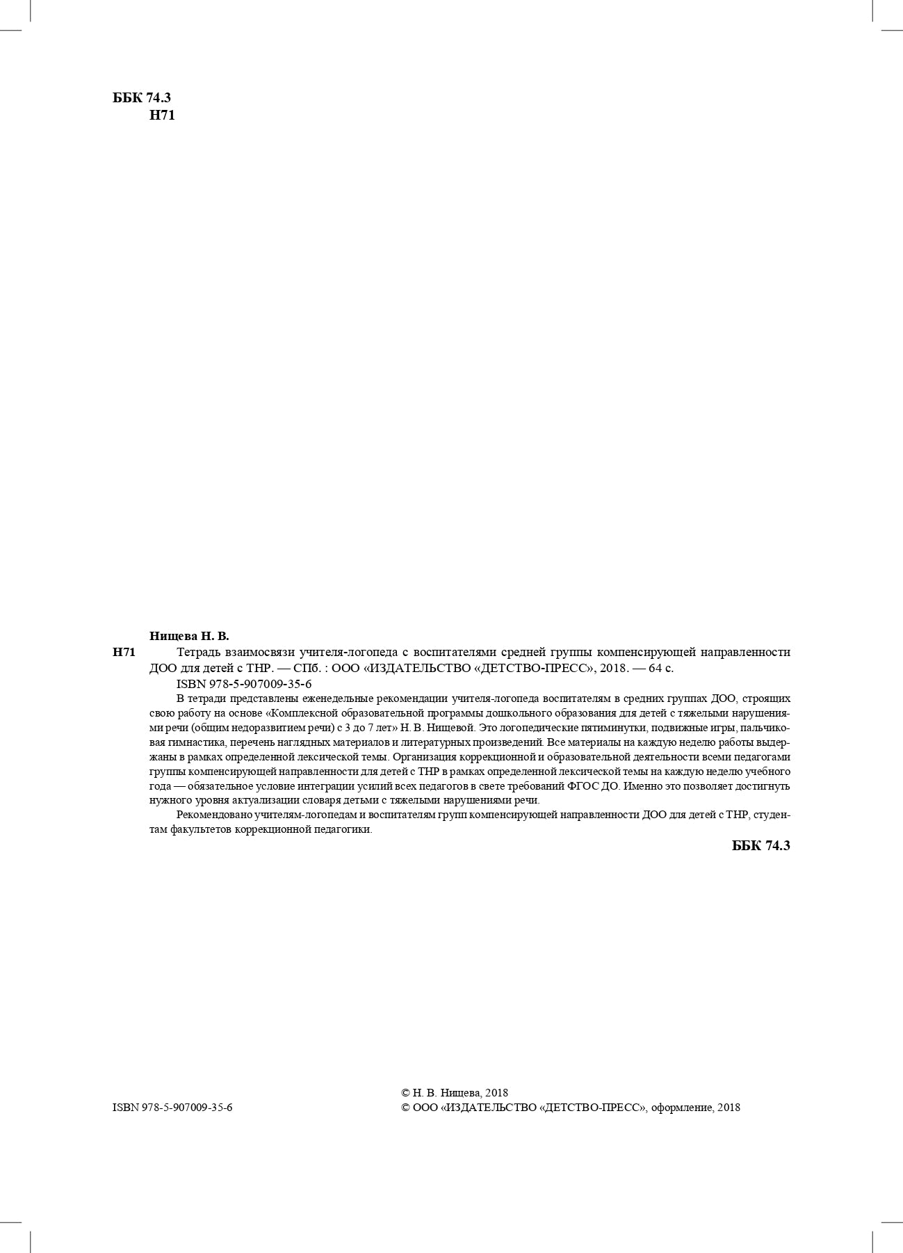 #ASTTD# Search Terms: Нищева Наталия Валентиновна , Nisheva Nataliya Valentinovna , Детство-Пресс , Detstvo-Press , Русский , Rysskii , Образовательная программа дошкольного образования для детей с тяжелыми нарушениями речи ( общим недоразвитием речи ) с 3 до 7 лет и методический компл , Obrazovatelnaya programma doshkolnogo obrazovaniya dlya detei s tyajelimi narysheniyami rechi ( obshim nedorazvitiem rechi ) s 3 do 7 let i metodicheskii kompl , 9785907009356 , 978-5-907009-35-6 , 1055687