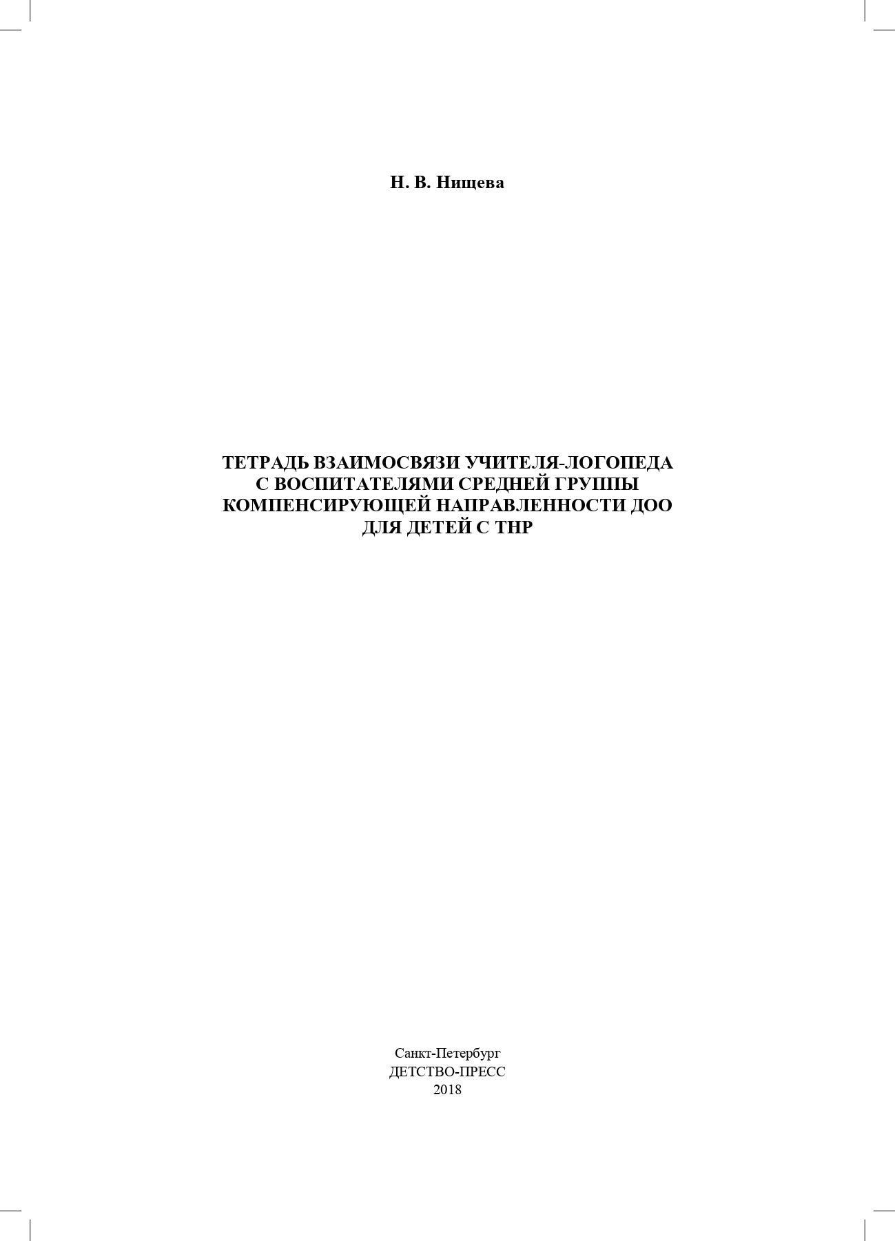 Нищева. Тетрадь взаимосвязи учителя-логопеда с воспитателями средней группы компенсирующей направленности ДОО д/детей с ТНР. ФАОП. (ФГОС)