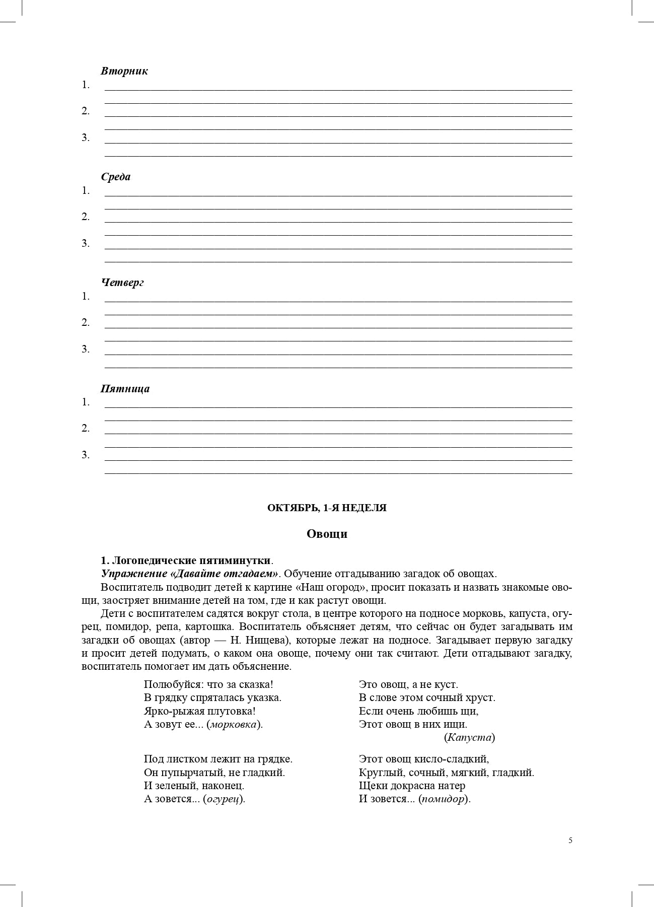 Handling time: 19 days В тетради представлены еженедельные рекомендации учителя-логопеда воспитателям в средних группах ДОО, строящих свою работу на основе "Комплексной образовательной программы дошкольного образования для детей с тяжелыми нарушения-ми речи (общим недоразвитием речи) с 3 до 7 лет" Н.В.Нищевой. Это логопедические пятиминутки, подвижные игры, пальчиковая гимнастика, перечень наглядных материалов и литературных произведений. Все материалы на каждую неделю работы выдержаны в рамках определенной лексической темы. Организация коррекционной и образовательной деятельности всеми педагогами группы компенсирующей направленности для детей с ТНР в рамках определенной лексической темы на каждую неделю учебного года - обязательное условие интеграции усилий всех педагогов в свете требований ФГОС ДО. Именно это позволяет достигнуть нужного уровня актуализации словаря детьми с тяжелыми нарушениями речи. Рекомендовано учителям-логопедам и воспитателям групп компенсирующей направленности ДОО для детей с ТНР, студентам факультетов коррекционной педагогики. Логопедические занятия с детьми: мнение эксперта – статья на OZON Гид.