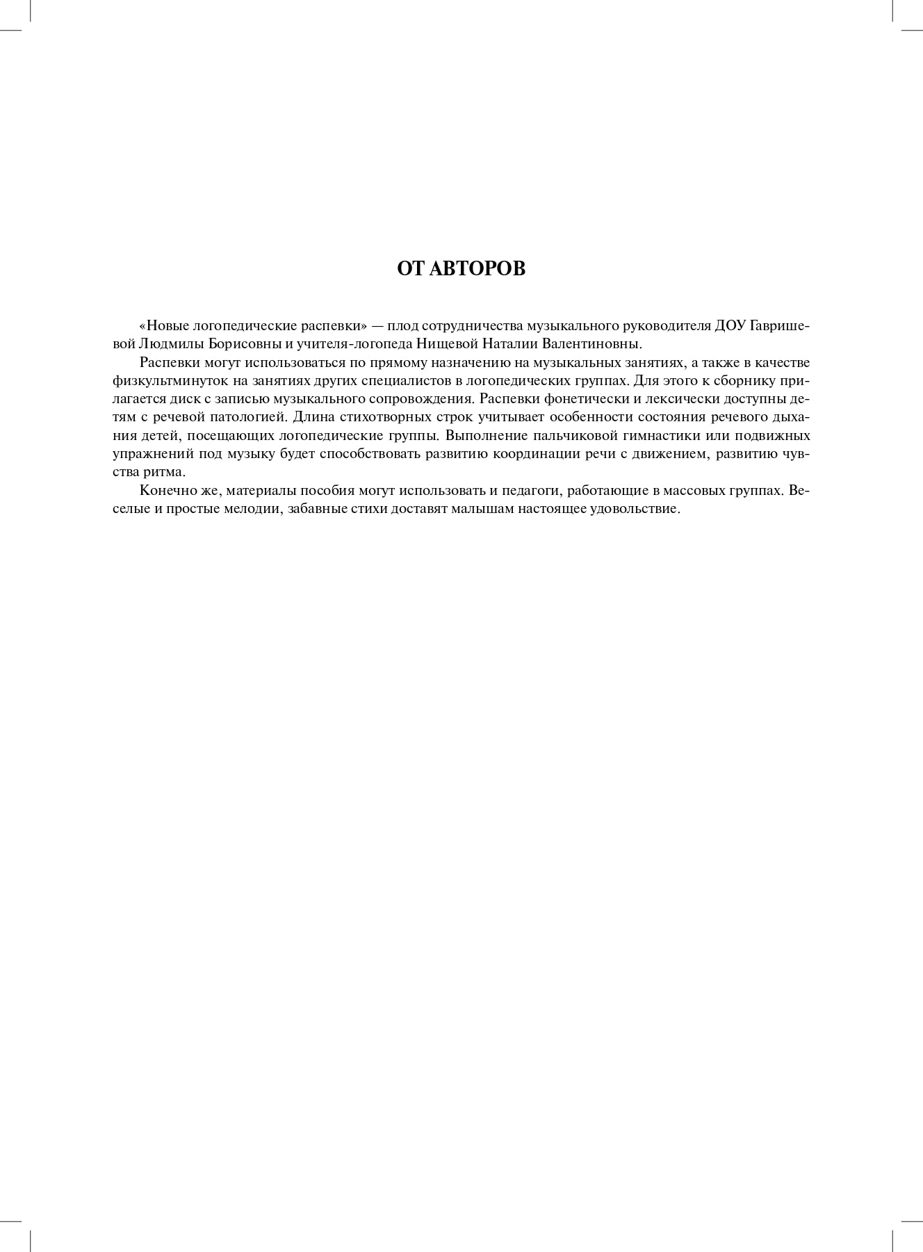 Handling time: 19 days Предлагаемое издание содержит занимательные распевки, музыкальные упражнения пальчиковой гимнастики и подвижные игры, созданные авторами для коррекционной работы с детьми в логопедических группах ДОУ. Использование в тесной связи движения, музыки и пения позволит развивать у ребенка просодическую сторону речи, тонкую и общую моторику, чувство ритма, а также творческие способности и воображение. К сборнику прилагается CD с записью музыкального сопровождения. Материалы пособия могут использоваться и педагогами массовых групп.Адресовано музыкальным руководителям и педагогам ДОУ. Логопедические занятия с детьми: мнение эксперта – статья на OZON Гид.