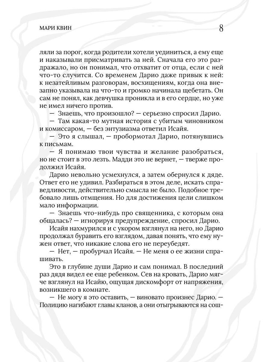 Handling time: 19 days Автор: Квин Мари, «Отсюда гнев»: Вендетта - обычай, по которому убийца близкого наказывается смертью. Выйдя из тюрьмы, Дарио полон решимости отомстить обидчику. Жажда мести приводит его к священнику, обладающему важной информацией и сыгравшему свою роль в трагедии. Но тот не разделяет стремления к возмездию и пытается убедить, что существует иной путь, если осушить истоки гнева. Честная работа и отношения с красивой прихожанкой могут стать для Дарио шагом вперед. Но может ли его душа найти покой и смысл жить иначе в мире, что кажется безнадежно прогнившим?