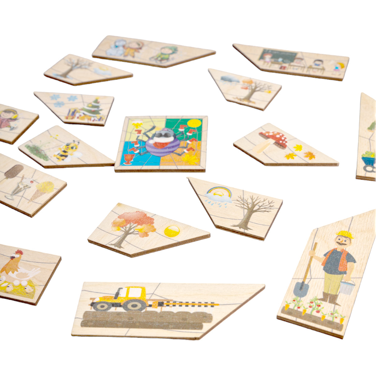 Paquets pour le "Pautchok" de la Grande-Bretagne. Jeux pour enfants:pôle de jeu (21x21 cm) - 1 pièce, paquets avec risque (de 6 à 9 cm, couleur - 3,3 cm) - 17 шт.Материал: березовая фанера. Pour un bébé âgé de 3 ans