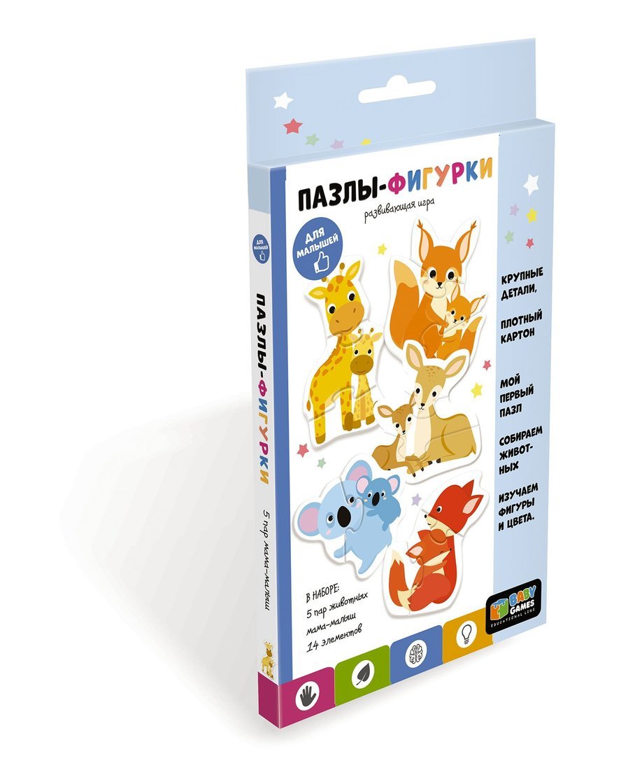 Пазлы-фигурки "Мама и малыш" - это отличный выбор первого пазла для Вашего ребёнка.Фигурка состоит из крупных деталей и подойдет для малышей от года.Пазл развивает мелкую моторику, слуховое и зрительное внимание, речь и память.Играя, ребёнок учится терпению, усидчивости, умению концентрироваться на одном занятии.В наборе: 5 пар животных мама-малыш (14 элементов).Материал: бумага, картон.