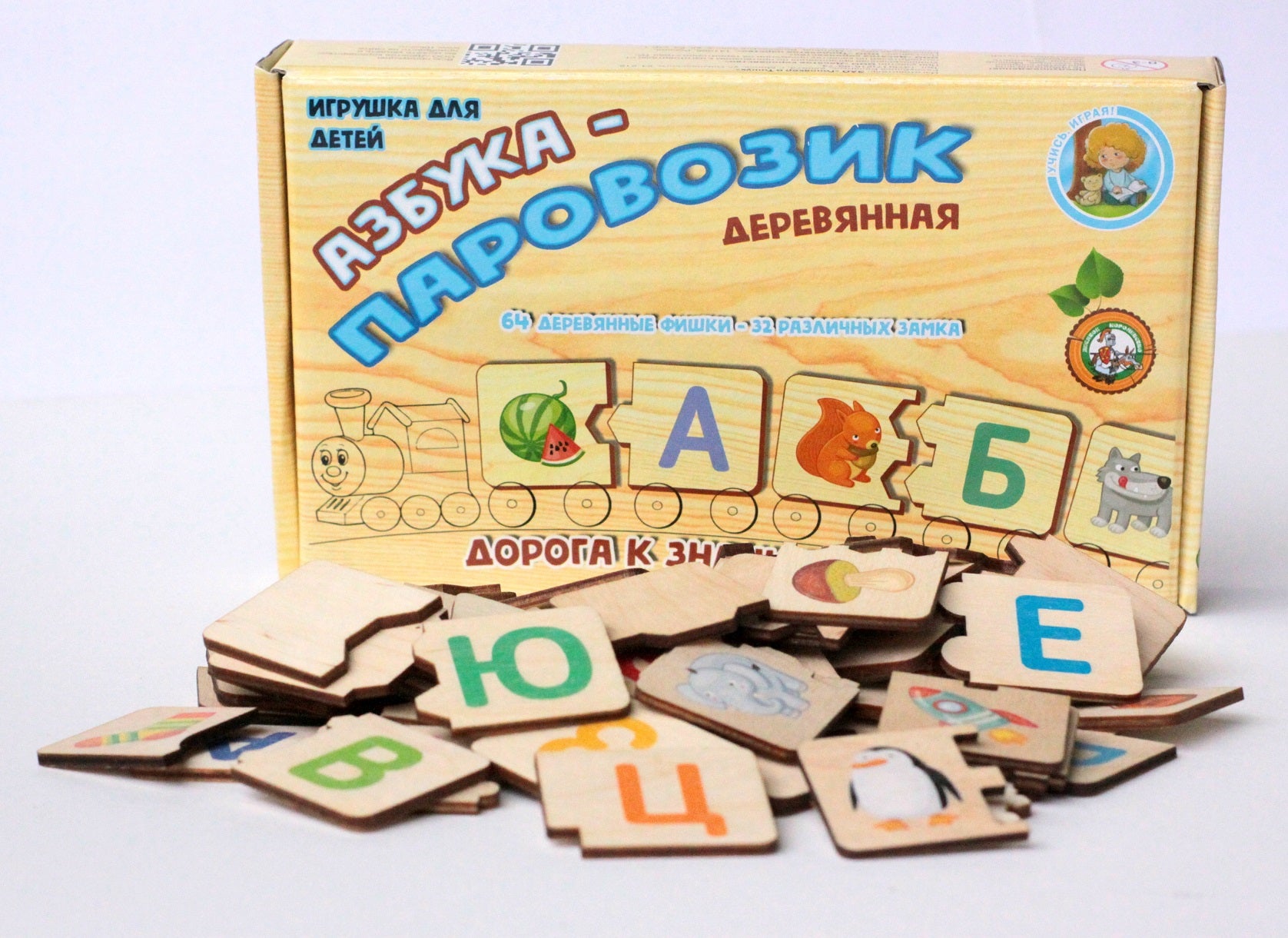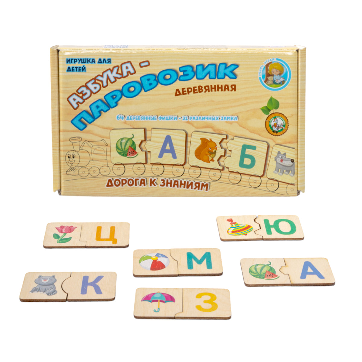 ПАЗЛ ДЕРЕВЯННЫЙ "АЗБУКА-ПАРОВОЗИК" dans le cor.14шт