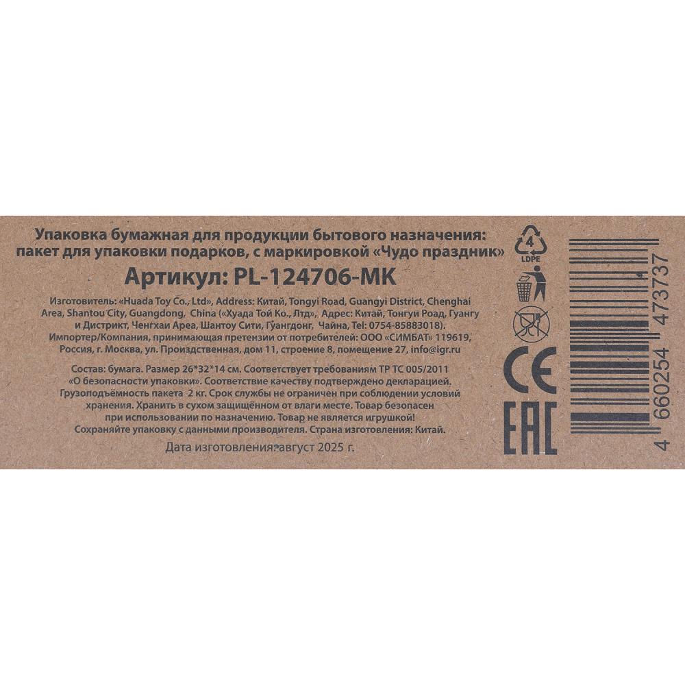 Jeu "Paket подарочный крафт l,мишка,140 гр/м2 ЧУДО ПРАЗДНИК в кор.10*12шт". Taux : 0,025.