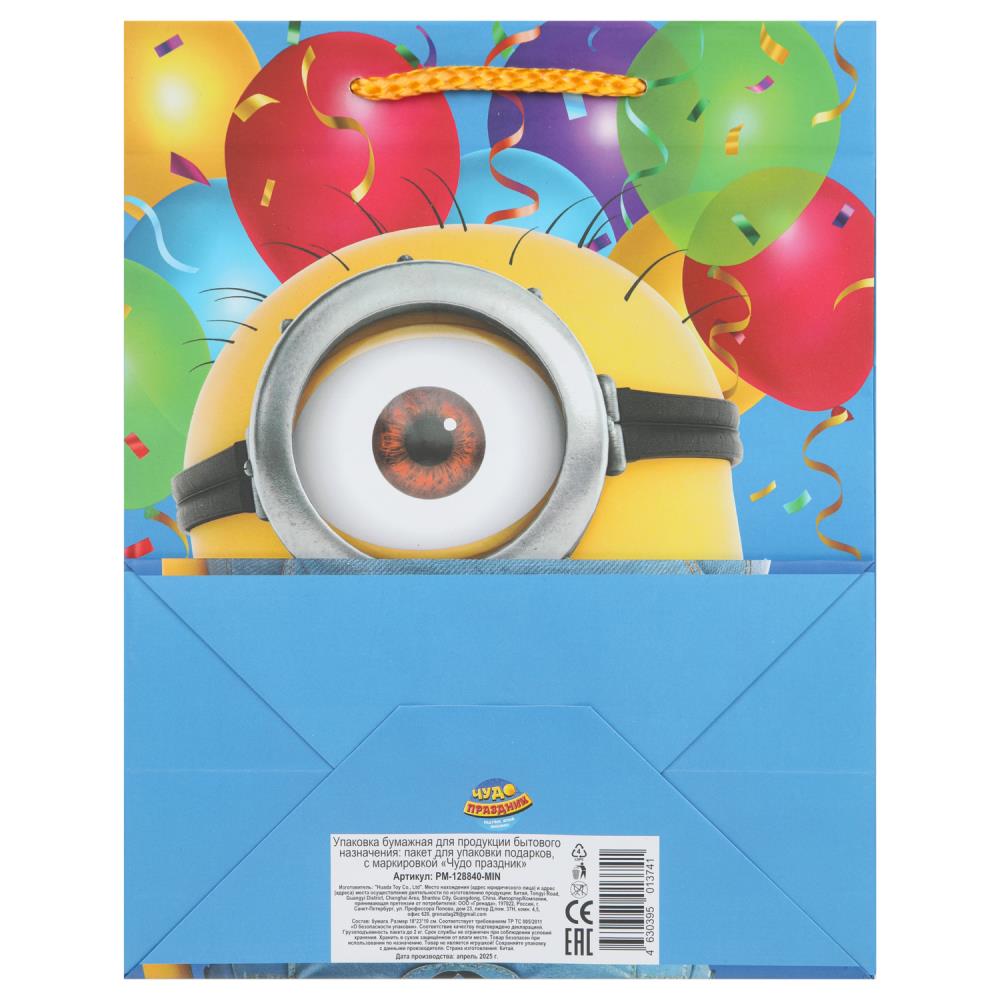 Пакет подарочный МАТОВЫЙ м,персонаж в очках,140 гр/м2 ЧУДО ПРАЗДНИК в кор.12*12шт