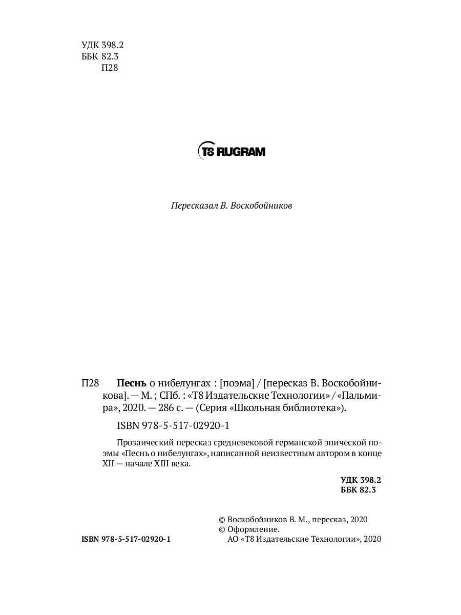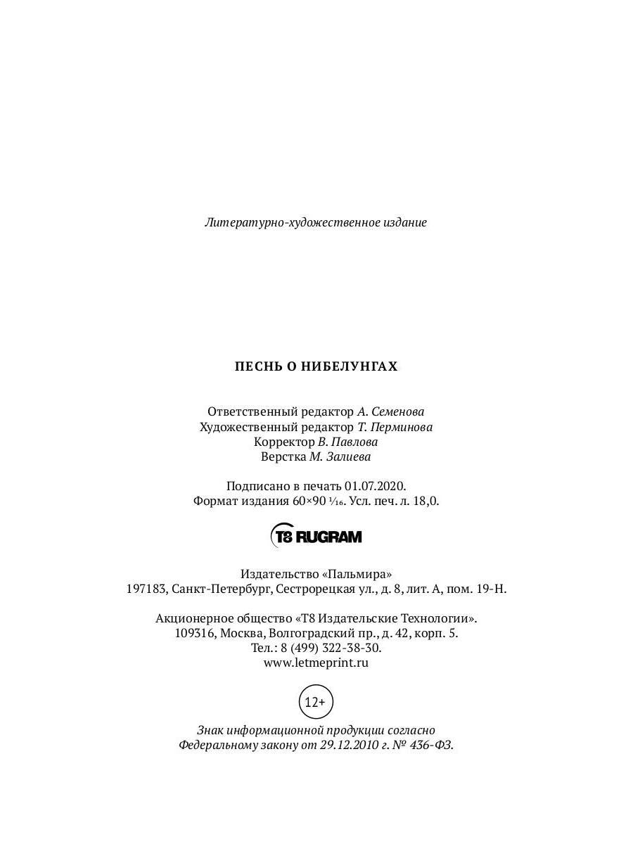 Handling time: 19 days «Песнь о нибелунгах»: Прозаический пересказ средневековой германской эпической поэмы «Песнь о нибелунгах», написанной неизвестным автором в конце XII — начале XIII века.