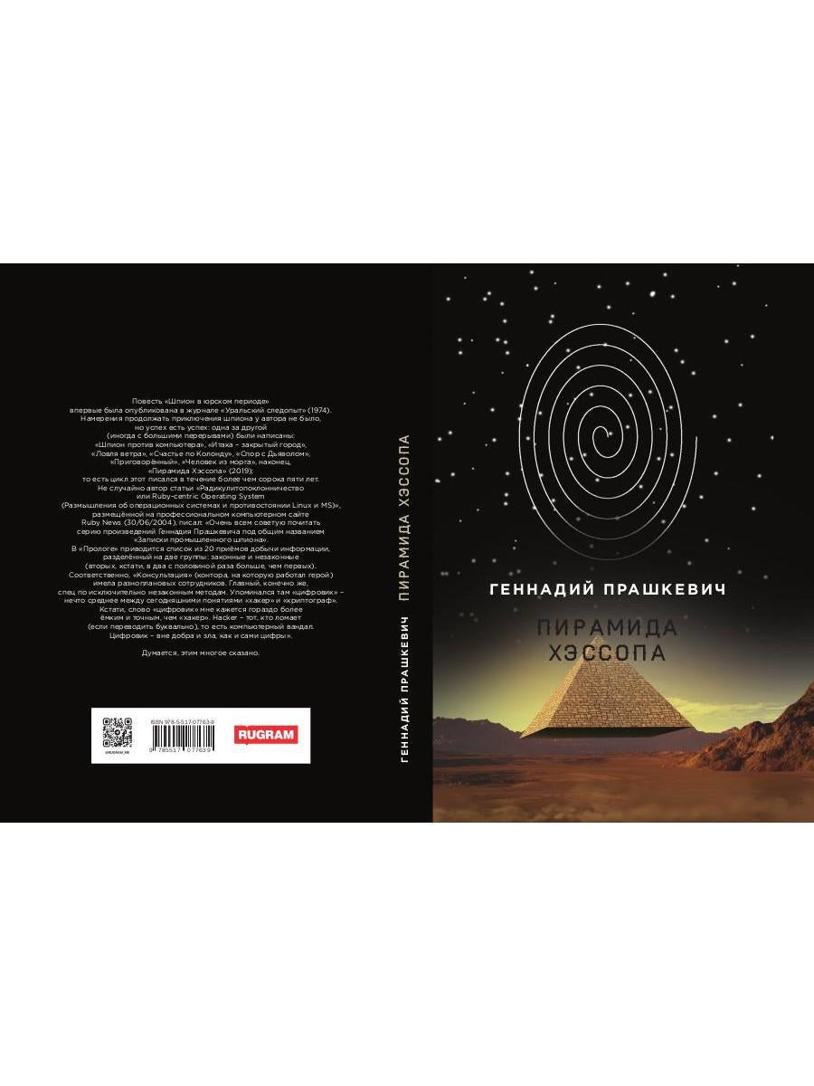 Handling time: 19 days Автор: Прашкевич Геннадий, «Пирамида Хэссопа»: Повесть «Шпион в юрском периоде» впервые была опубликована в журнале «Уральский следопыт» (1974). Намерения продолжать приключения шпиона у автора не было, но успех есть успех: одна за другой (иногда с большими перерывами) были написаны: «Шпион против компьютера», «Итака – закрытый город», «Ловля ветра», «Счастье по Колонду», «Спор с Дьяволом», «Приговорённый», «Человек из морга», наконец, «Пирамида Хэссопа» (2019); то есть цикл этот писался в течение более чем сорока пяти лет. Не случайно автор статьи «Радикулитопоклонничество или Ruby-centric Operating System (Размышления об операционных системах и противостоянии Linux и MS)», размещённой на профессиональном компьютерном сайте Ruby News (30/06/2004), писал: «Очень всем советую почитать серию произведений Геннадия Прашкевича под общим названием «Записки промышленного шпиона». В «Прологе» приводится список из 20 приёмов добычи информации, разделённый на две группы: законные и незаконные (вторых, кстати, в два с половиной раза больше, чем первых). Соответственно, «Консультация» (контора, на которую работал герой) имела разноплановых сотрудников. Главный, конечно же, спец по исключительно незаконным методам. Упоминался там «цифровик» – нечто среднее между сегодняшними понятиями «хакер» и «криптограф». Кстати, слово «цифровик» мне кажется гораздо более ёмким и точным, чем «хакер». Hacker – тот, кто ломает (если переводить буквально), то есть компьютерный вандал. Цифровик – вне добра и зла, как и сами цифры». Думается, этим многое сказано.