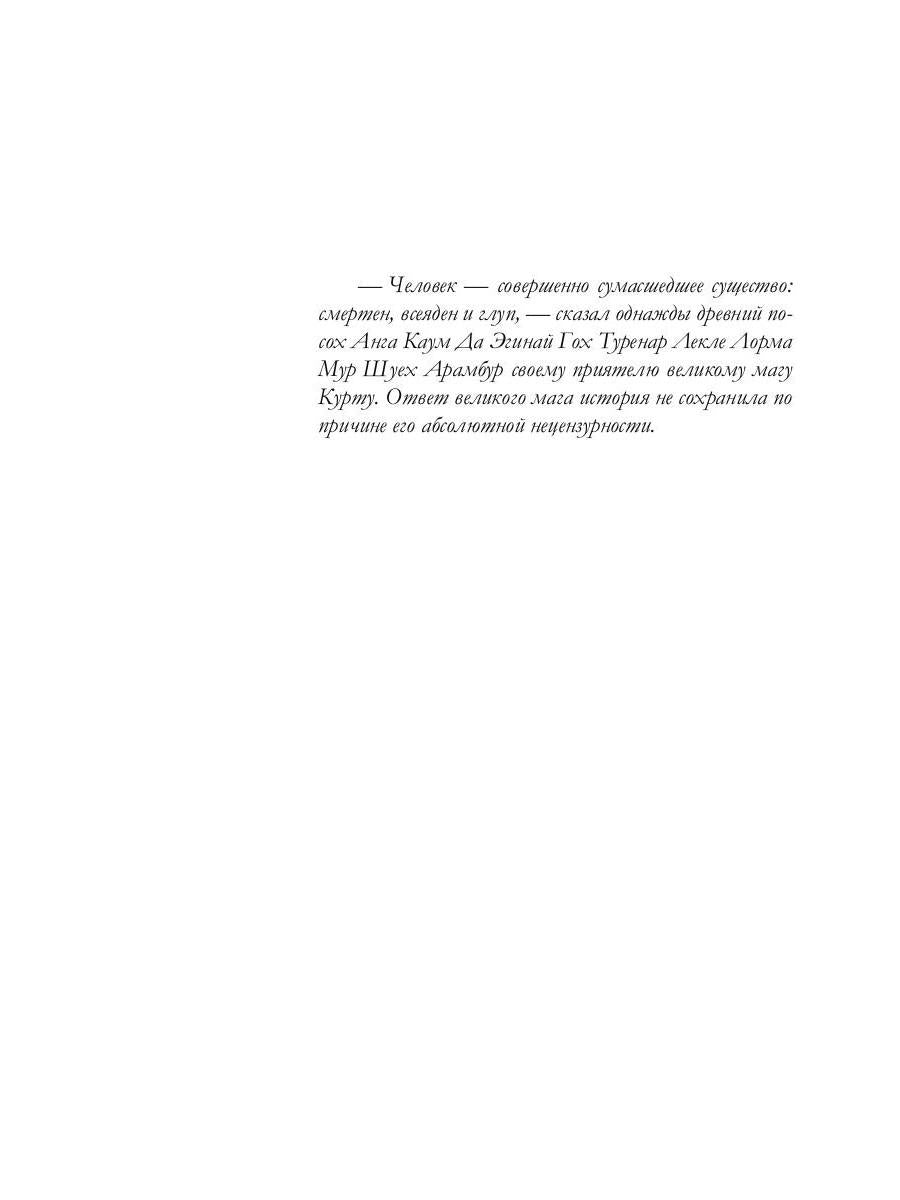 Handling time: 19 days Автор: Раткевич С., «Покрывало ночи»: — Человек — совершенно сумасшедшее существо: смертен, всеяден и глуп, — сказал однажды древний посох Анга Каум Да Эгинай Гох Туренар Лекле Лорма Мур Шуех Арамбур своему приятелю великому магу Курту. Ответ великого мага история не сохранила по причине его абсолютной нецензурности.