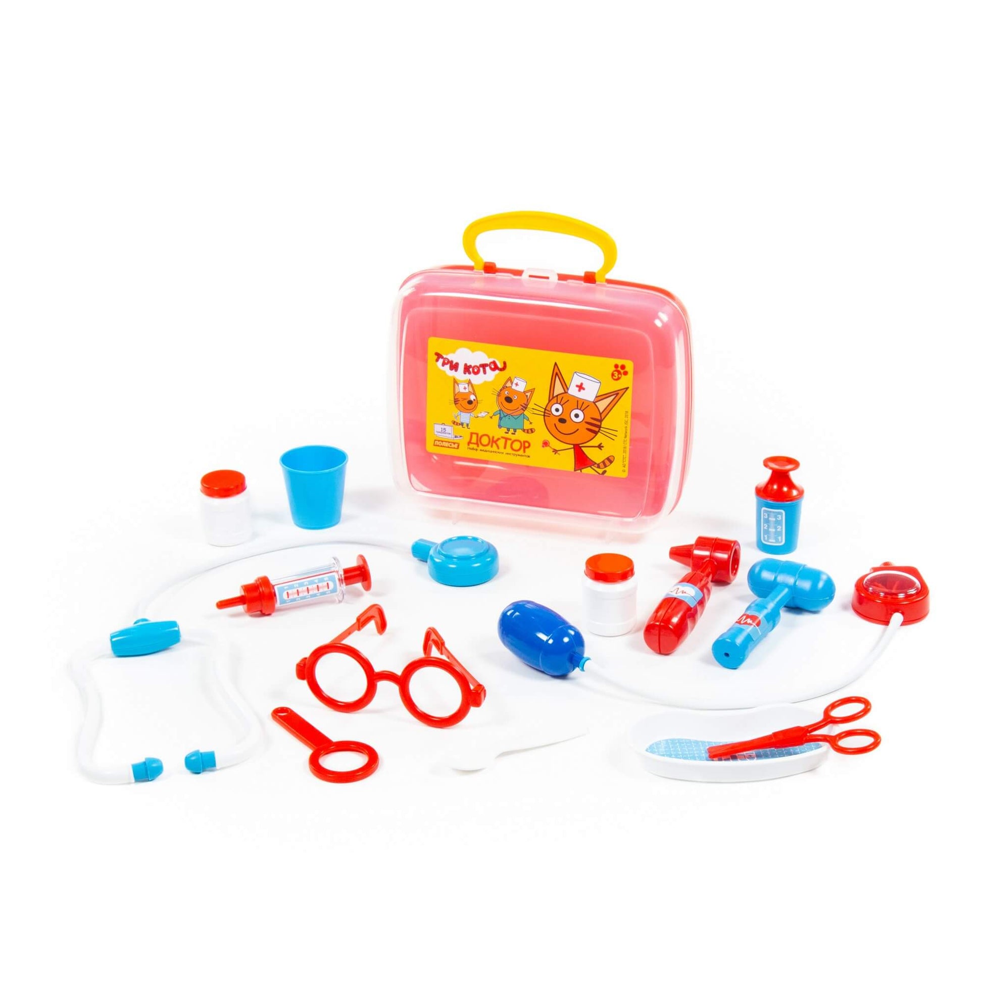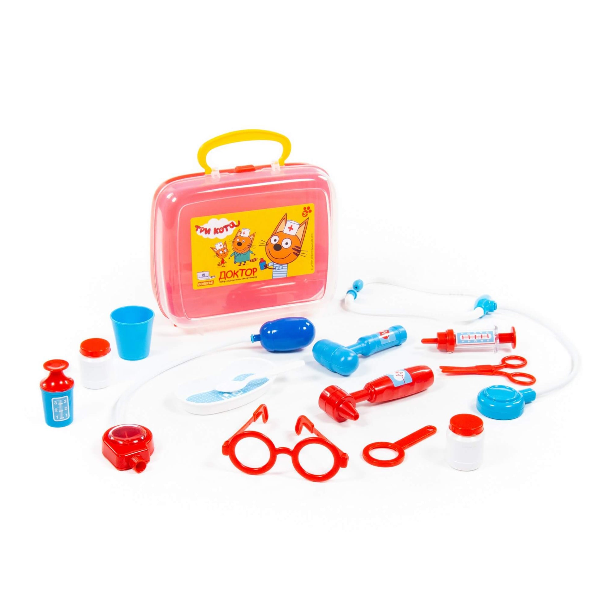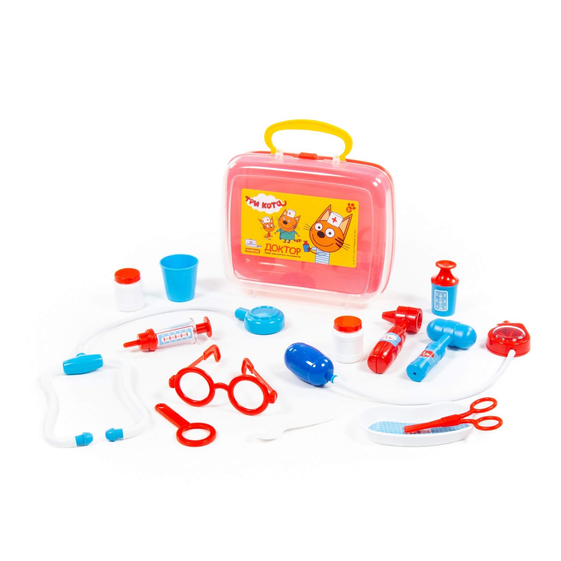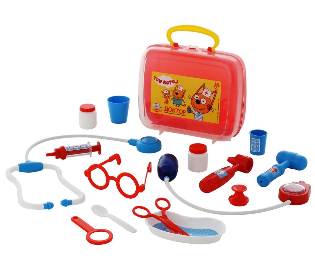 Handling time: 24 days Теперь озорные котята из мультфильма «Три кота» будут радовать детей во время игр с набором доктора от фабрики «Полесье». Детские игрушки выделяются ярким дизайном, частью которого стали хвостатые персонажи из любимого мультсериала. «Три кота» рассказывают о повседневной жизни маленьких, но очень любознательных котят: Коржика, Компота и их младшей сестренки Карамельки. В состав набора «Три кота» «Доктор» входят: ножницы - 1 шт., очки - 1 шт., лупа - 1 шт., шприц - 1 шт., лоток для инструментов - 1 шт., ложечка - 1 шт., стетоскоп (для прослушивания сердца и лёгких) - 1 шт., тонометр (для измерения давления) - 1 шт., отоскоп (инструмент лор-врача) - 1 шт., молоточек - 1 шт., мерный стаканчик с крышкой - 1 шт., стаканчик - 1 шт., баночка - 2 шт.