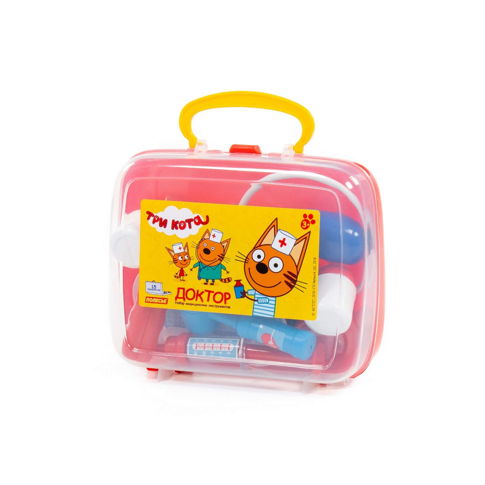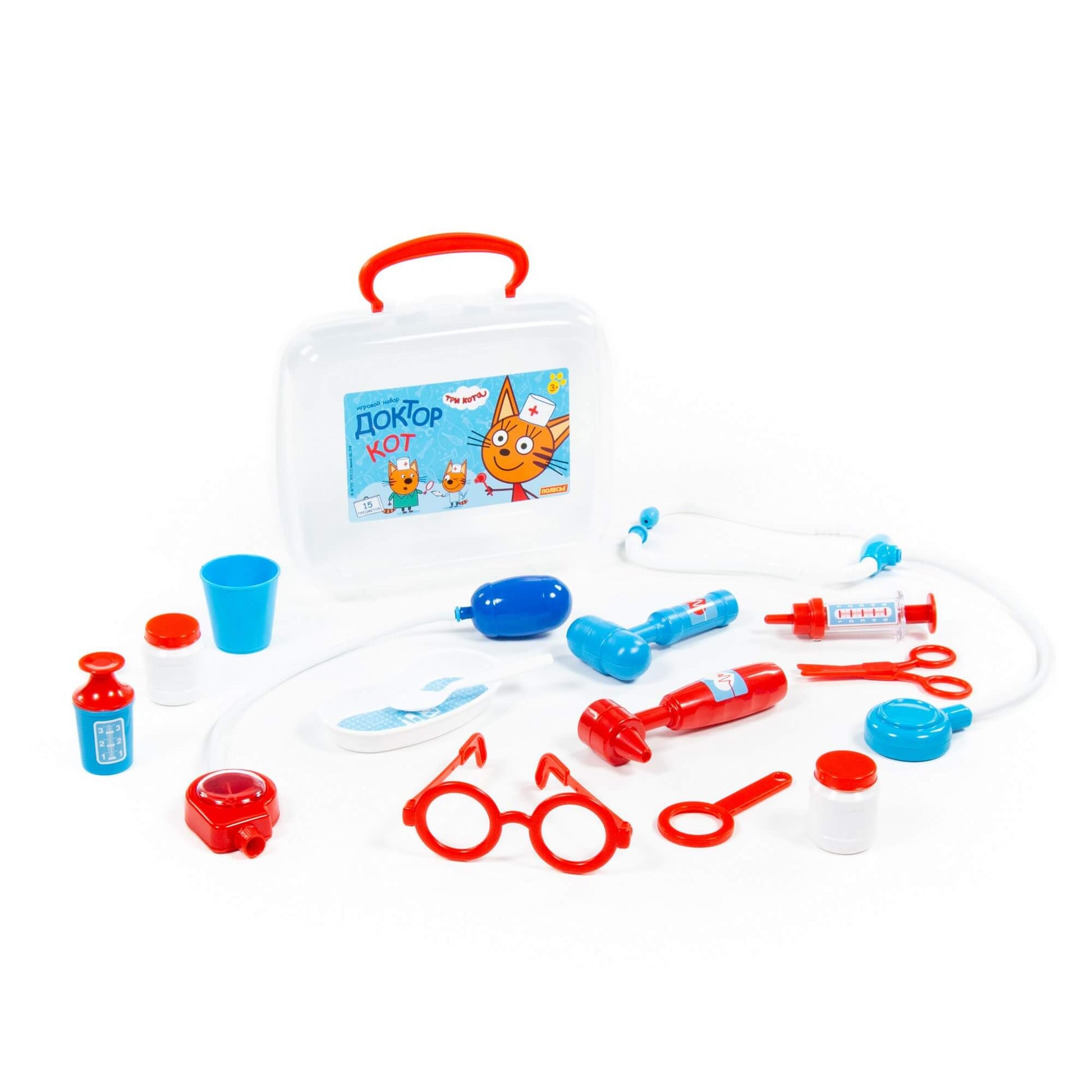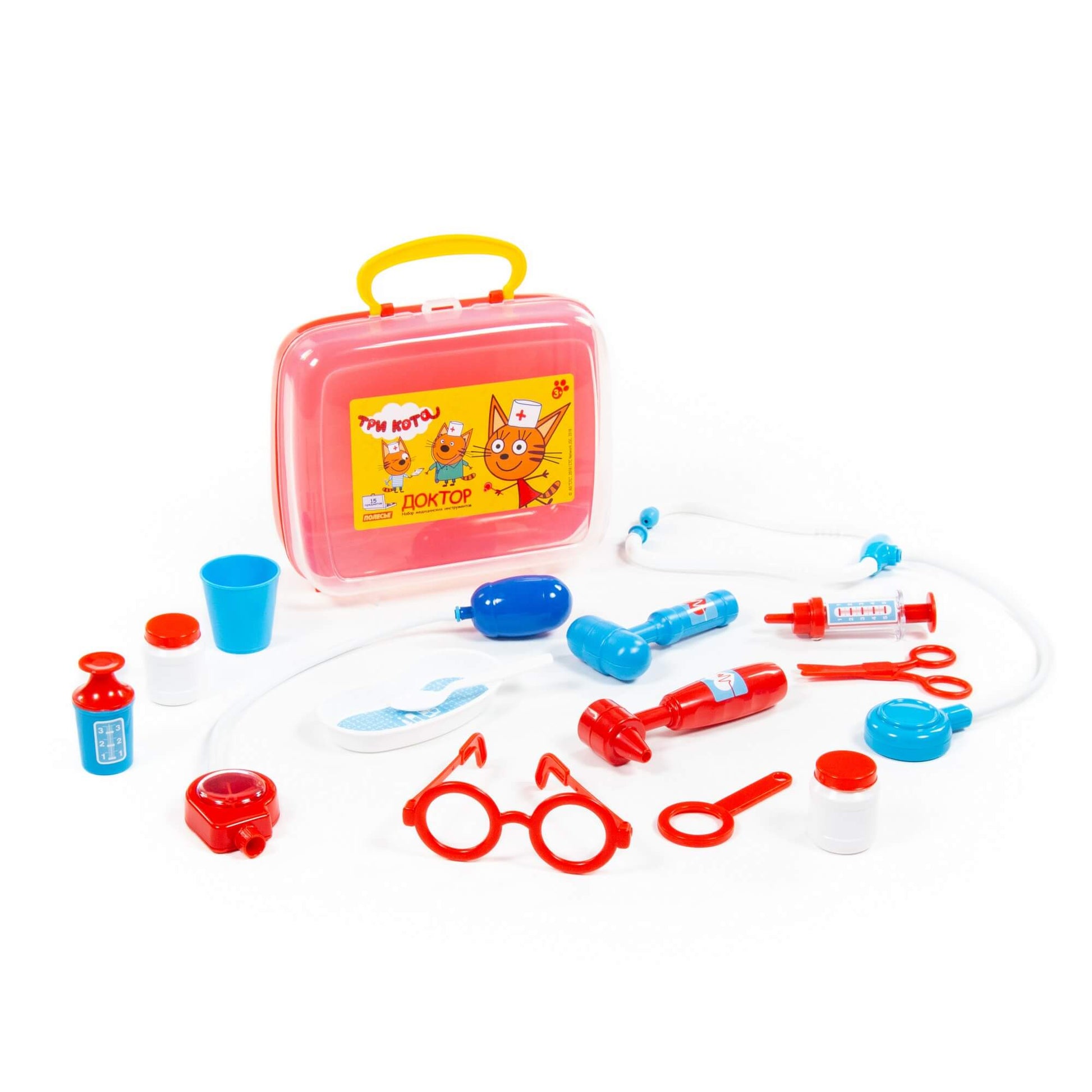 Handling time: 24 days Теперь озорные котята из мультфильма «Три кота» будут радовать детей во время игр с набором доктора от фабрики «Полесье». Детские игрушки выделяются ярким дизайном, частью которого стали хвостатые персонажи из любимого мультсериала. «Три кота» рассказывают о повседневной жизни маленьких, но очень любознательных котят: Коржика, Компота и их младшей сестренки Карамельки. В состав набора «Три кота» «Доктор» входят: ножницы - 1 шт., очки - 1 шт., лупа - 1 шт., шприц - 1 шт., лоток для инструментов - 1 шт., ложечка - 1 шт., стетоскоп (для прослушивания сердца и лёгких) - 1 шт., тонометр (для измерения давления) - 1 шт., отоскоп (инструмент лор-врача) - 1 шт., молоточек - 1 шт., мерный стаканчик с крышкой - 1 шт., стаканчик - 1 шт., баночка - 2 шт.