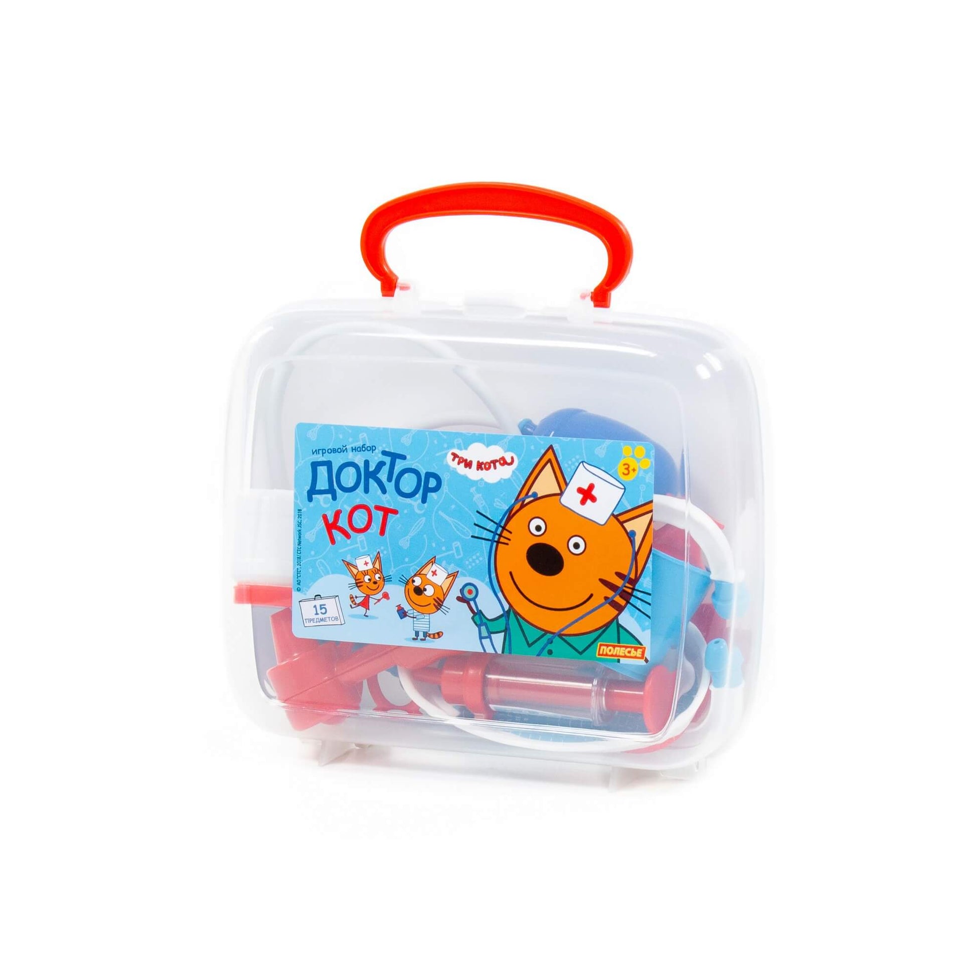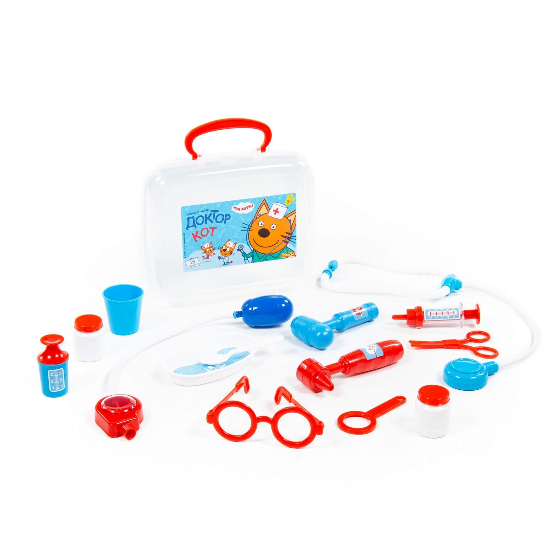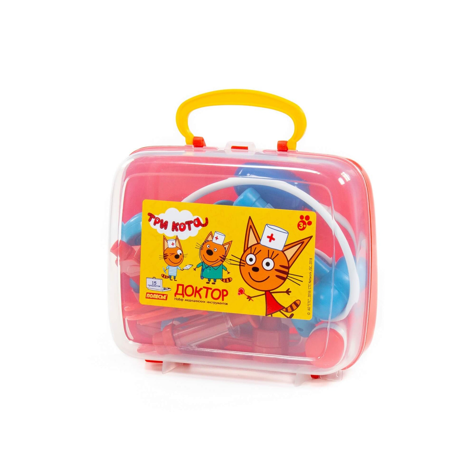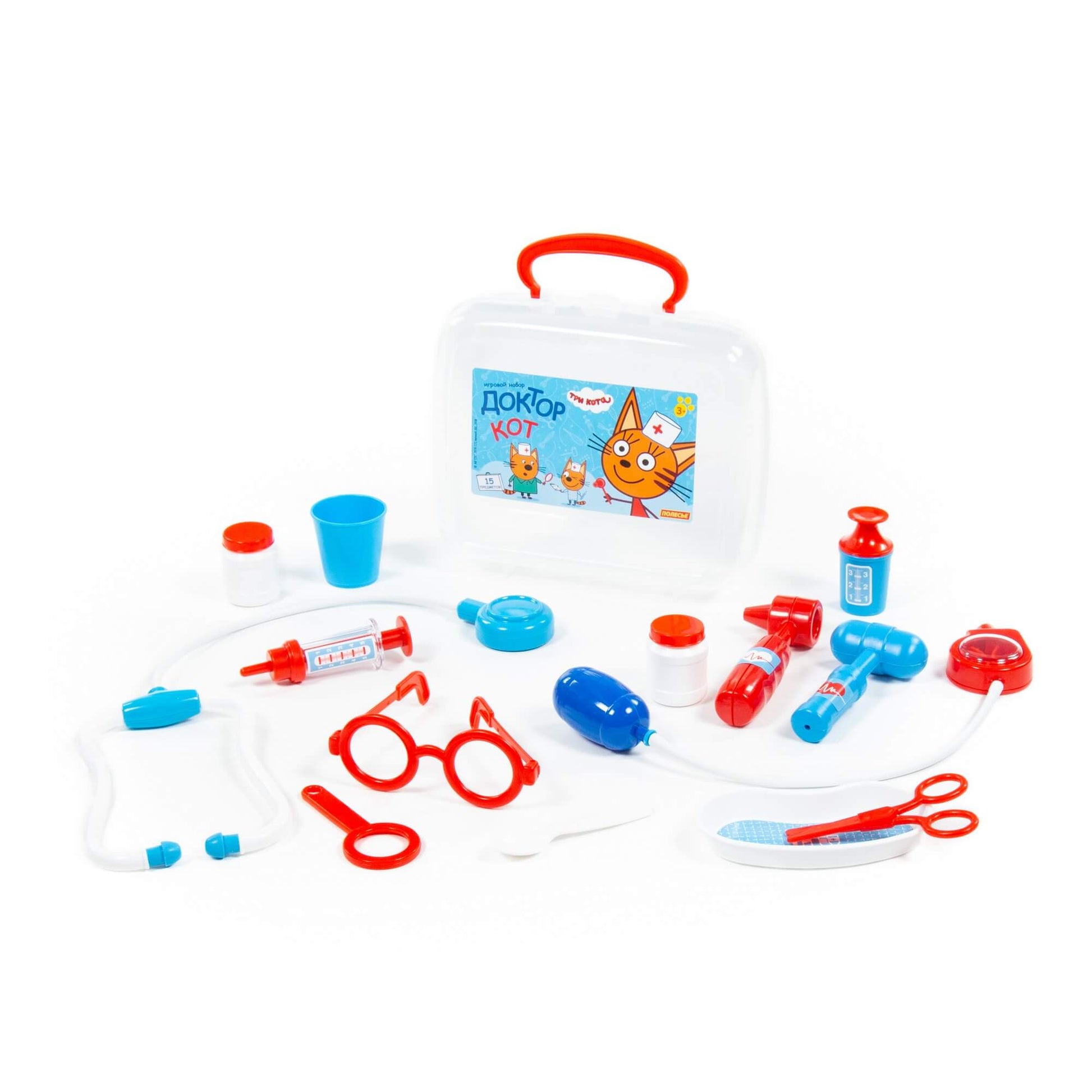Handling time: 24 days Теперь озорные котята из мультфильма «Три кота» будут радовать детей во время игр с набором доктора от фабрики «Полесье». Детские игрушки выделяются ярким дизайном, частью которого стали хвостатые персонажи из любимого мультсериала. «Три кота» рассказывают о повседневной жизни маленьких, но очень любознательных котят: Коржика, Компота и их младшей сестренки Карамельки. В состав набора «Три кота» «Доктор» входят: ножницы - 1 шт., очки - 1 шт., лупа - 1 шт., шприц - 1 шт., лоток для инструментов - 1 шт., ложечка - 1 шт., стетоскоп (для прослушивания сердца и лёгких) - 1 шт., тонометр (для измерения давления) - 1 шт., отоскоп (инструмент лор-врача) - 1 шт., молоточек - 1 шт., мерный стаканчик с крышкой - 1 шт., стаканчик - 1 шт., баночка - 2 шт.