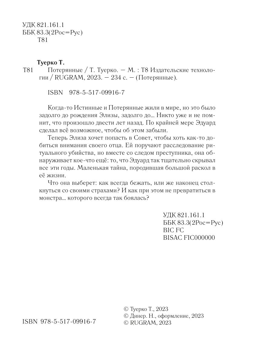 #ASTTD# Search Terms: Туерко Т. , Tyerko T. , Т8 RUGRAM , Publishing , T8 RUGRAM , Publishing , Потерянные , Poteryannie , 9785517099167 , 978-5-517-09916-7 , 1951161
