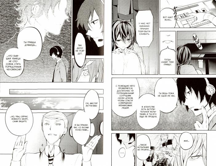 Ацуси хочет остановить «Крушение Моби Дика» - предотвратить вторую стадию плана по сожжению Иокогамы. Но путь ему преграждает Акутагава: преследуя Ацуси, он тоже пробирается на корабль. Там их встречает Фицджеральд — и Трехсторонняя битва снова в самом разгаре! Перед Ацуси и Акутагавой предстает могучая способность противника «Великий Фицджеральд» — и они моментально терпят поражение. Детектив и мафиози питают друг к другу лишь ненависть, но все же оба знают, что нужно сделать, чтобы избежать крушения... История о противостоянии «Гильдии» подходит к кульминации!В книгу вошли 9-й и 10-й тома оригинальной манги, главы 34-42. Здесь завершается арка «Гильдия», начинается арка «После Гильдии». Пять причин купить 1Крепкий детектив с мировыми заговорами, погонями и правительственными шпионами, но у всех есть сверхспособности, и все это по 2 тома в 1 книге. 2Все персонажи - знаменитые писатели и поэты со всего света: Осаму Дадзай, Тюя Накахара, Марк Твен, Федор Достоевский, Николай Гоголь - только начало списка. 3Если ребенок не любит классику, но фанатеет по аниме и манге, после этой серии он точно начнет читать. 4Есть аниме-адаптация от студии Bones, полнометражные фильмы, театральные постановки. 5В 2014 году манга вошла в ТОП-10 изданий, рекомендованных книжными магазинами по всей Японии (по версии Nippon Shuppan Hanbai).