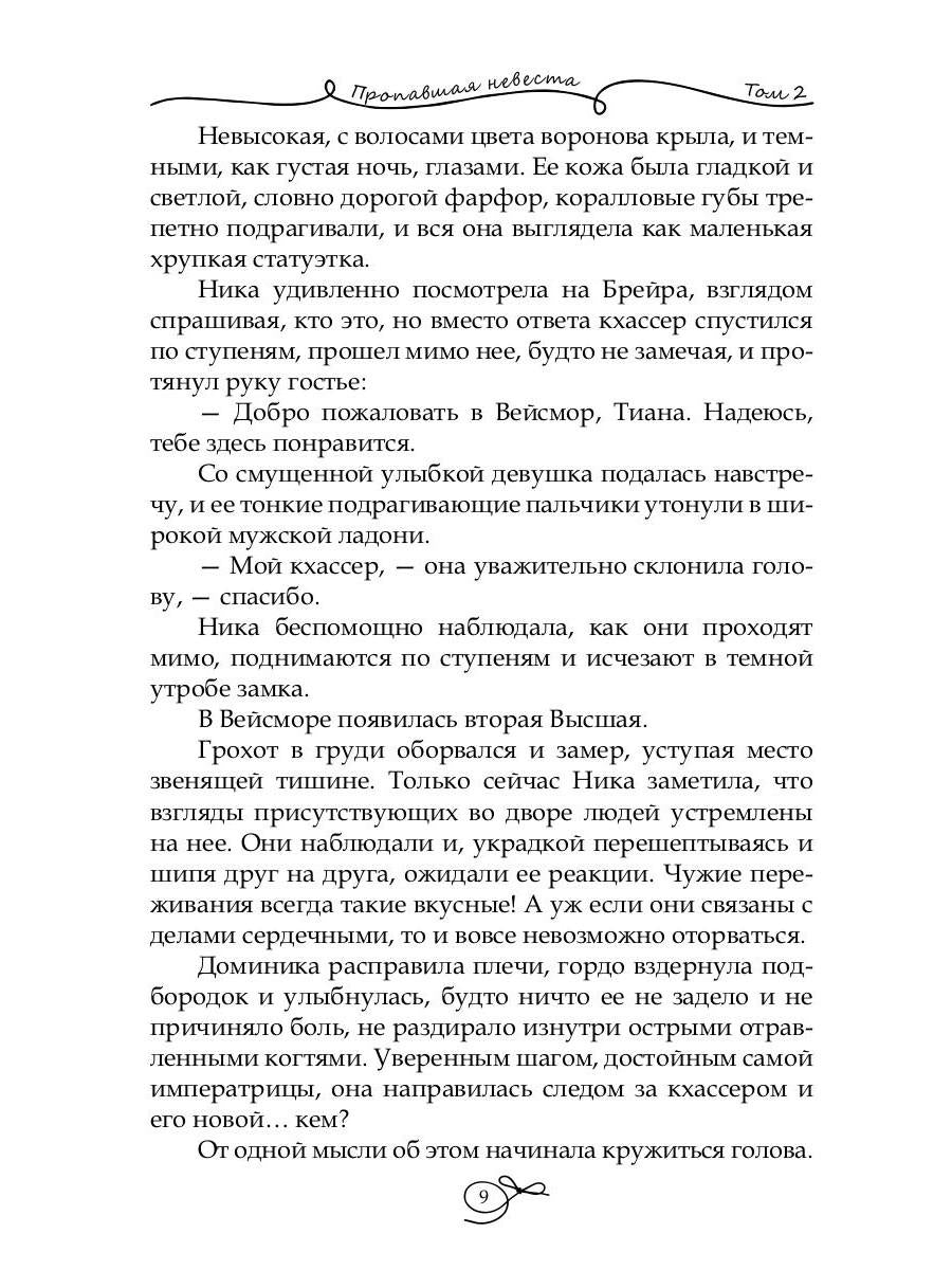 Handling time: 14 days Автор: Верховцева П., «Пропавшая невеста. Т. 2»: Юная Доминика не могла и предположить чем для нее обернется смотр невест. Сложное путешествие, козни соперницы, крушение надежд. И тот, кто мог быть ее мужем, превратился в самое настоящее наказание. Теперь у нее одна цель — вернуться домой.