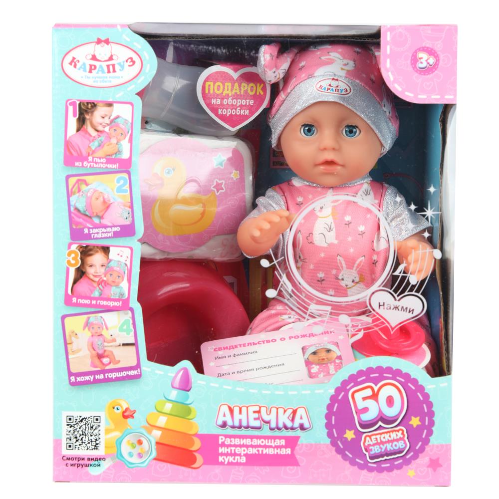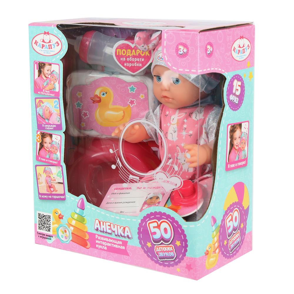 Le jeu "Пупс озвуч 25см, пьет, писает, закр. глазки, 4акс, 50 звуков КАРАПУЗ в кор.24шт". Taux : 0,178.