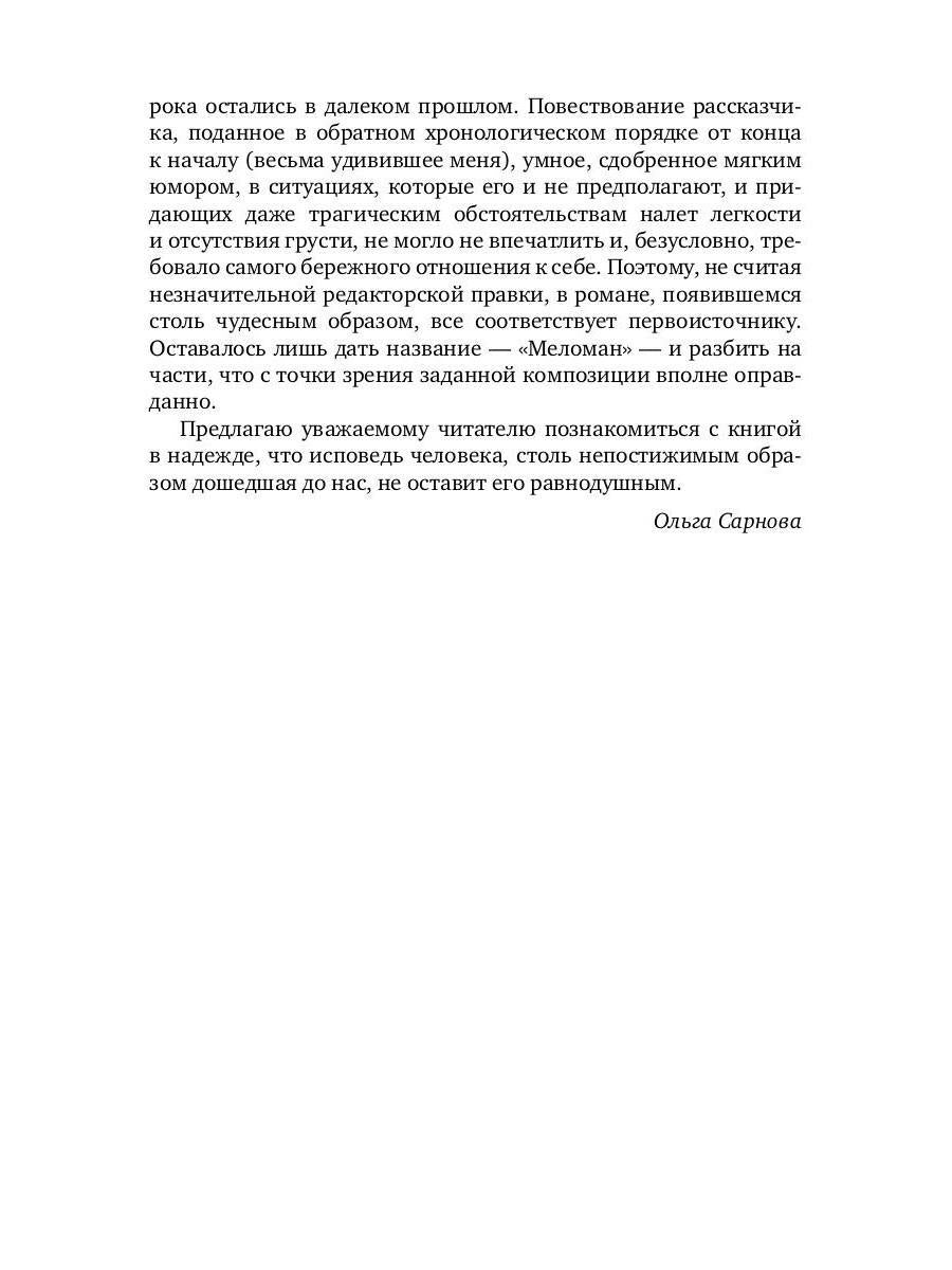 Handling time: 19 days Автор: Рекрутов Вадим, «Меломан»: В книге «Меломан» (Вадим Рекрутов) главный герой — бывший офицер-подводник, пишущий статьи для рок-журнала в свободное от коммерческой деятельности время. Линии его жизни присущи крутые виражи: доверяющий чувствам, он способен по наитию следовать преподносимым судьбой сюрпризам, зачастую действуя в экстремальных ситуациях.