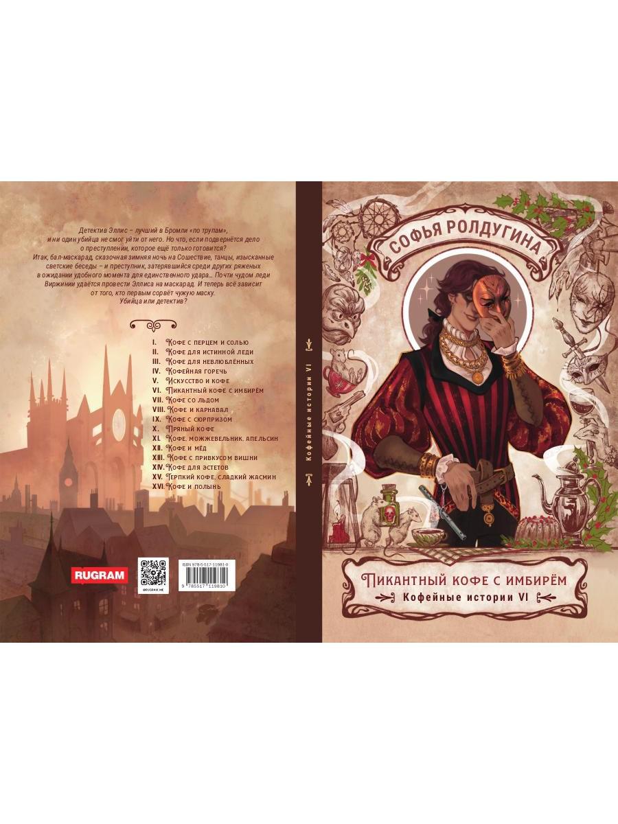 Handling time: 19 days Автор: Ролдугина Софья, «Пикантный кофе с имбирем. Кофейные истории 6»: Детектив Эллис — лучший в Бромли «по трупам», и ни один убийца не смог уйти от него. Но что, если подвернётся дело о преступлении, которое ещё только готовится? Итак, бал-маскарад, сказочная зимняя ночь на Сошествие, танцы, изысканные светские беседы — и преступник, затерявшийся среди других ряженых в ожидании удобного момента для единственного удара… Почти чудом леди Виржинии удаётся провести Эллиса на маскарад. И теперь всё зависит от того, кто первым сорвёт чужую маску. Убийца или детектив?