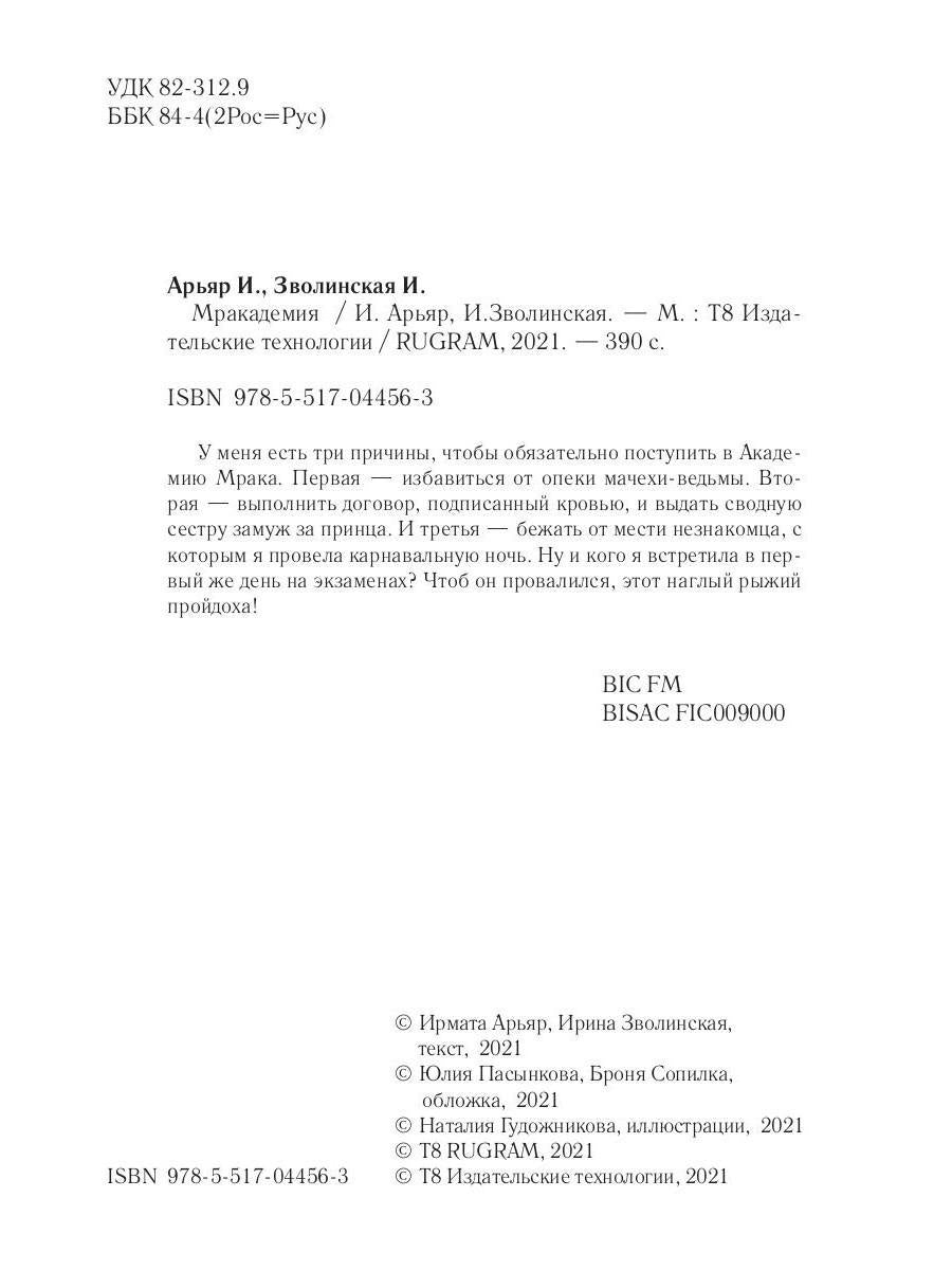 Handling time: 19 days Авторы: Зволинская Ирина, Арьяр Ирмата, «Мракадемия»: У меня есть три причины, чтобы обязательно поступить в Академию Мрака. Первая — избавиться от опеки мачехи-ведьмы. Вторая — выполнить договор, подписанный кровью, и выдать сводную сестру замуж за принца. И третья — бежать от мести незнакомца, с которым я провела карнавальную ночь. Ну и кого я встретила в первый же день на экзаменах? Чтоб он провалился, этот наглый рыжий пройдоха!