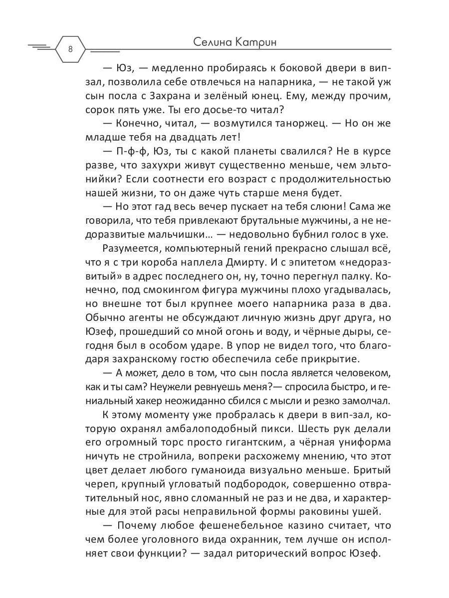 Handling time: 19 days Автор: Катрин Селина, «Агент алеф-класса»: У вас так бывало, что буквально за пару суток вас пытались несколько раз убить, подставить, а власти планеты объявили гонорар за вашу поимку? Вот и у меня что-то пошло не так с последним заданием. Теперь я не могу доверять даже своему единственному напарнику... Разве что случайному мужчине, благородно спасшему меня от нелепой смерти. Вот только он обычный парень с Захрана, который думает, что я человеческая девушка, и ненавидит представительниц моей расы.