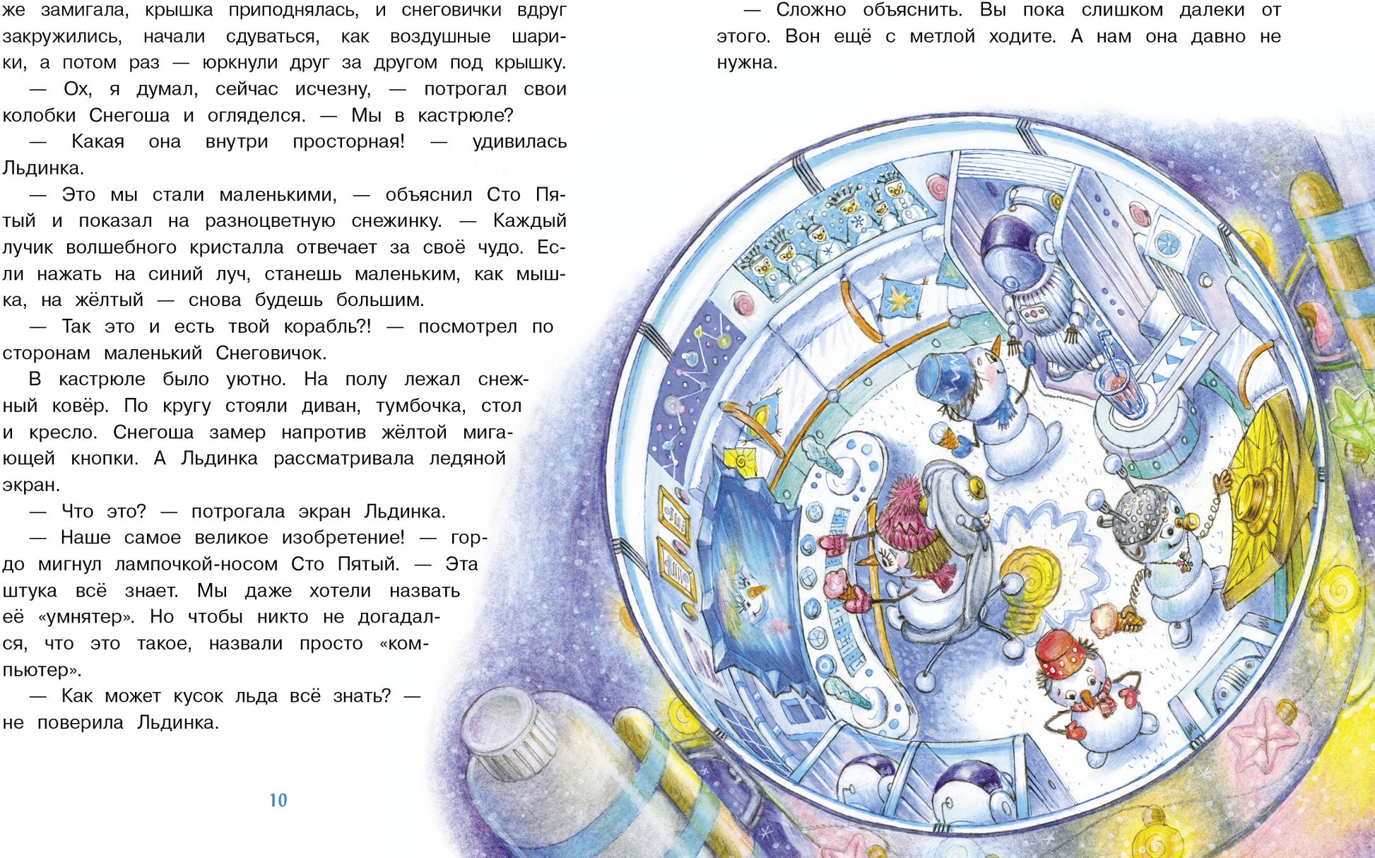 Handling time: 19 days Даже опытным искателям приключений бывает сложно найти что-то новое и необычное. И тогда приключения находят их сами... Снеговичок, Льдинка и Снегоша перед Новым годом отправились за хлебом. И прямо перед их носом приземлилась космическая летающая кастрюля! Друзья очень обрадовались звездному гостю! Он пригласил их к себе на корабль и рассказал, что снеговики живут на многих планетах, которые называются по носам снеговиков. Планета, на которой живут наши друзья снеговички, оказывается, называется Морковка. А сам космический пришелец - с планеты Лампочка. И пока маленький Снеговичок и Льдинка знакомились с удивительным изобретением под названием "компьютер", любопытный Снегоша решил нажать на странную желтую кнопку. И тут случилось неожиданное: крышка захлопнулась и кастрюля взмыла в небо! Куда летят снеговички? Как им теперь вернуться домой? Ведь скоро Новый год!..Для детей дошкольного возраста. Пять причин купить 1Новая чудесная история для детей от Татьяны Коваль, автора книг про самого маленького снеговичка. 2Замечательная добрая сказка, наполненная душевным теплом, добротой и неожиданными сюжетными поворотами. 3Трогательные иллюстрации Александра Чукавина подарят незабываемые впечатления и создадут чудесное настроение. 4Великолепное полиграфическое исполнение на плотной, высококачественной бумаге. 5Яркое красочное издание станет отличным подарком для ребенка.