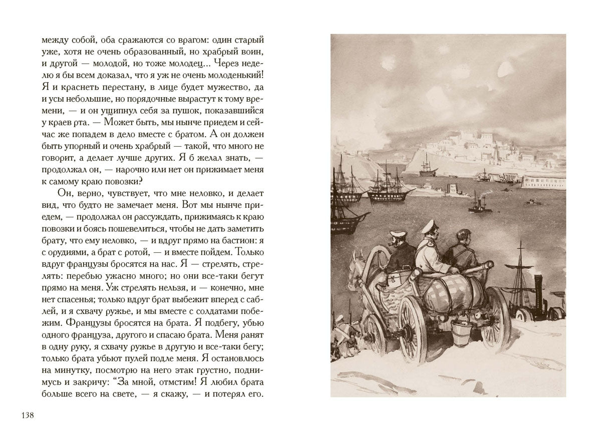 Handling time: 19 days Вскоре после начала Крымской войны молодой поручик Лев Толстой по личной просьбе был переведен в Севастополь. Будущий писатель сражался на знаменитом 4-м бастионе и писал заметки о баталиях, армей ском быте, военном госпитале. Позже они сложились в художественные очерки «Севастополь в декабре месяце», «Севастополь в мае», «Севастополь в августе 1855 года», которые отличаются, пожалуй, лучшим описанием батальных сцен в русской литературе. Повествование сопровождают достоверные иллюстрации Анатолия Кокорина, который сам был участником войны — Великой Отечественной. Рассказы писателя и рисунки художника предстают перед читателем как репортаж с места событий.
