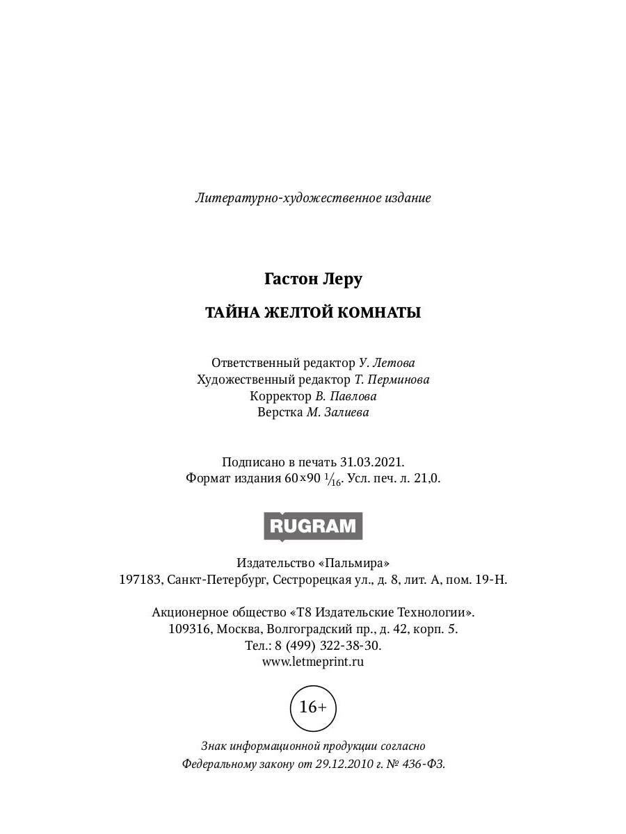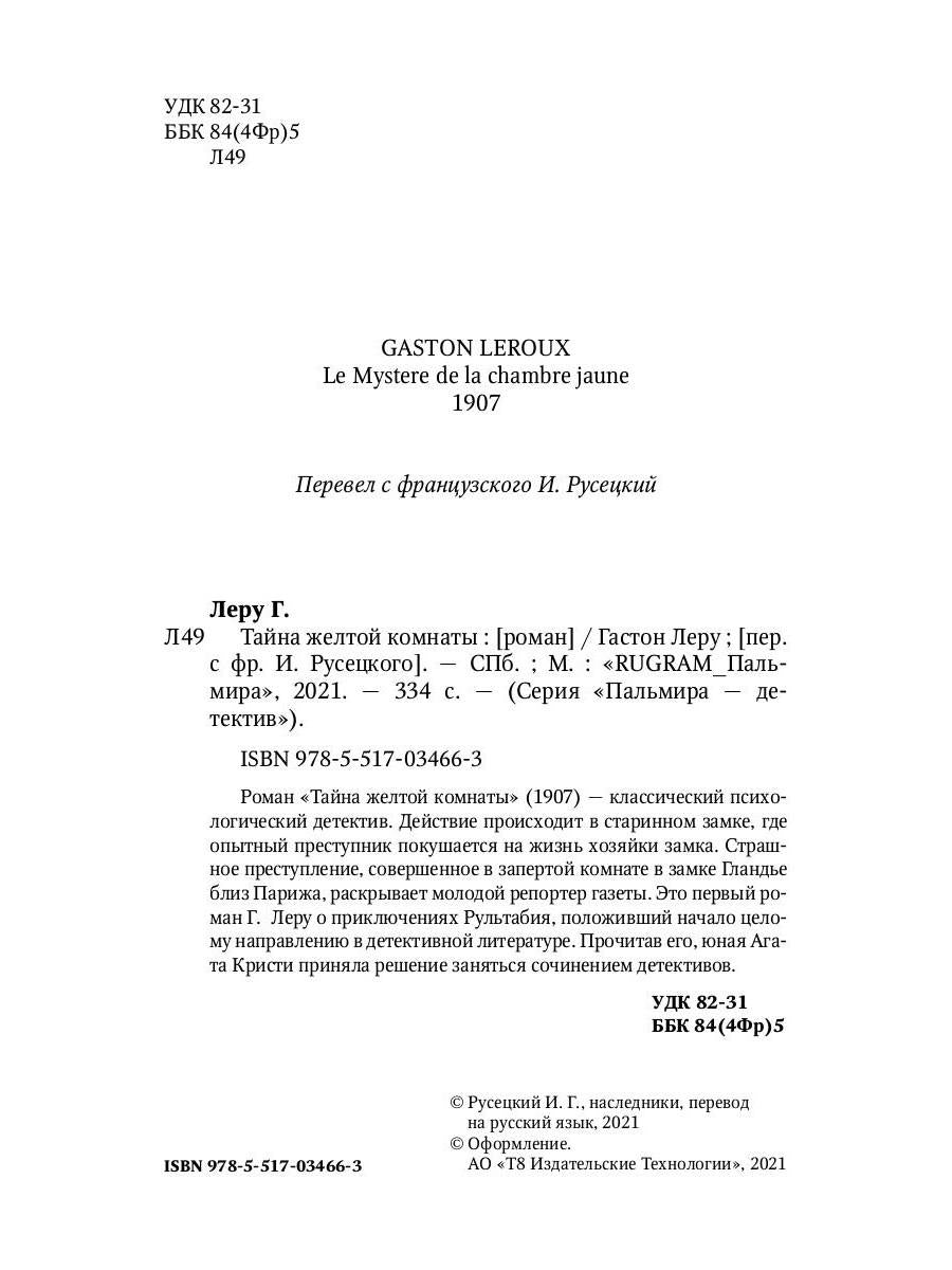 #ASTTD# Search Terms: Леру Гастон , Lery Gaston , Пальмира , Т8 RUGRAM , Palmira , T8 RUGRAM , Пальмира - Детектив , Palmira - Detektiv , 9785517034663 , 978-5-517-03466-3 , 1694081