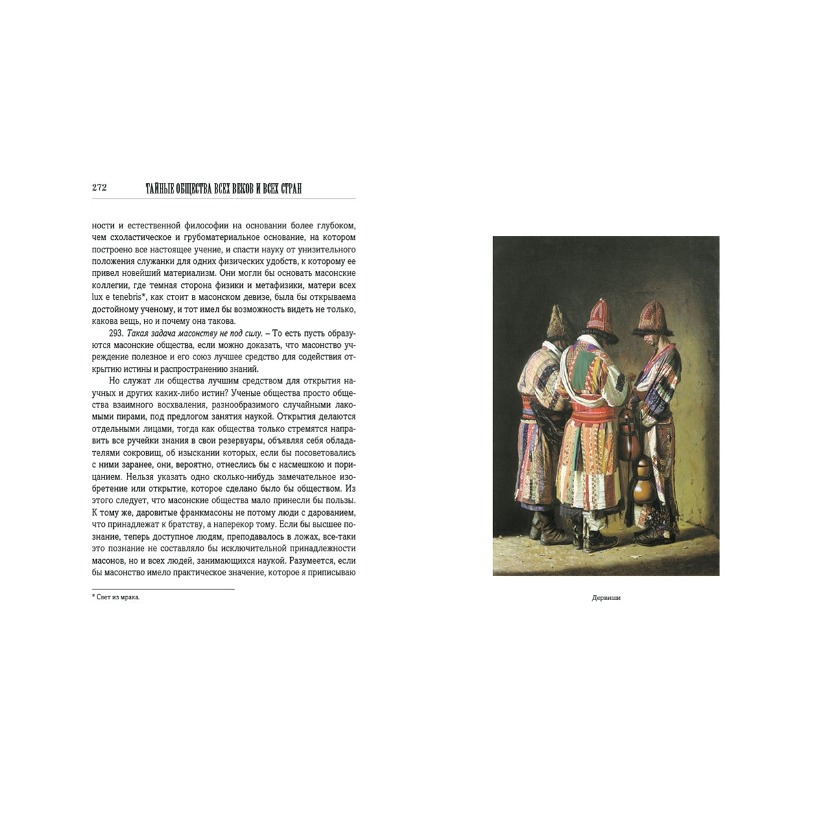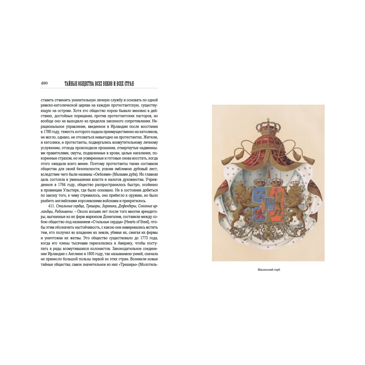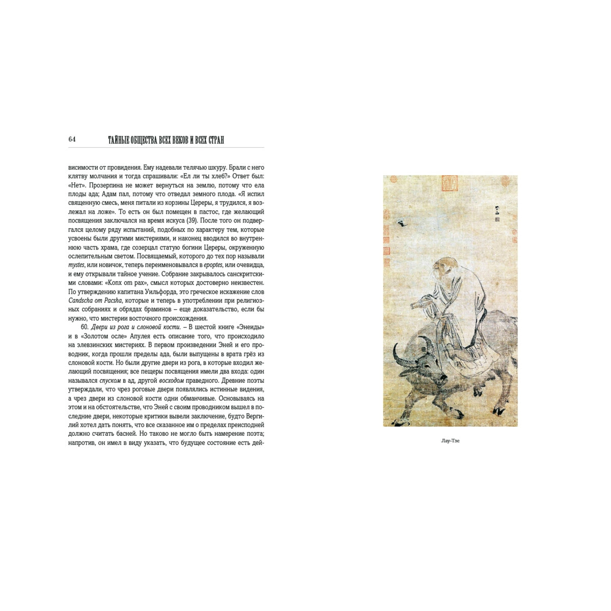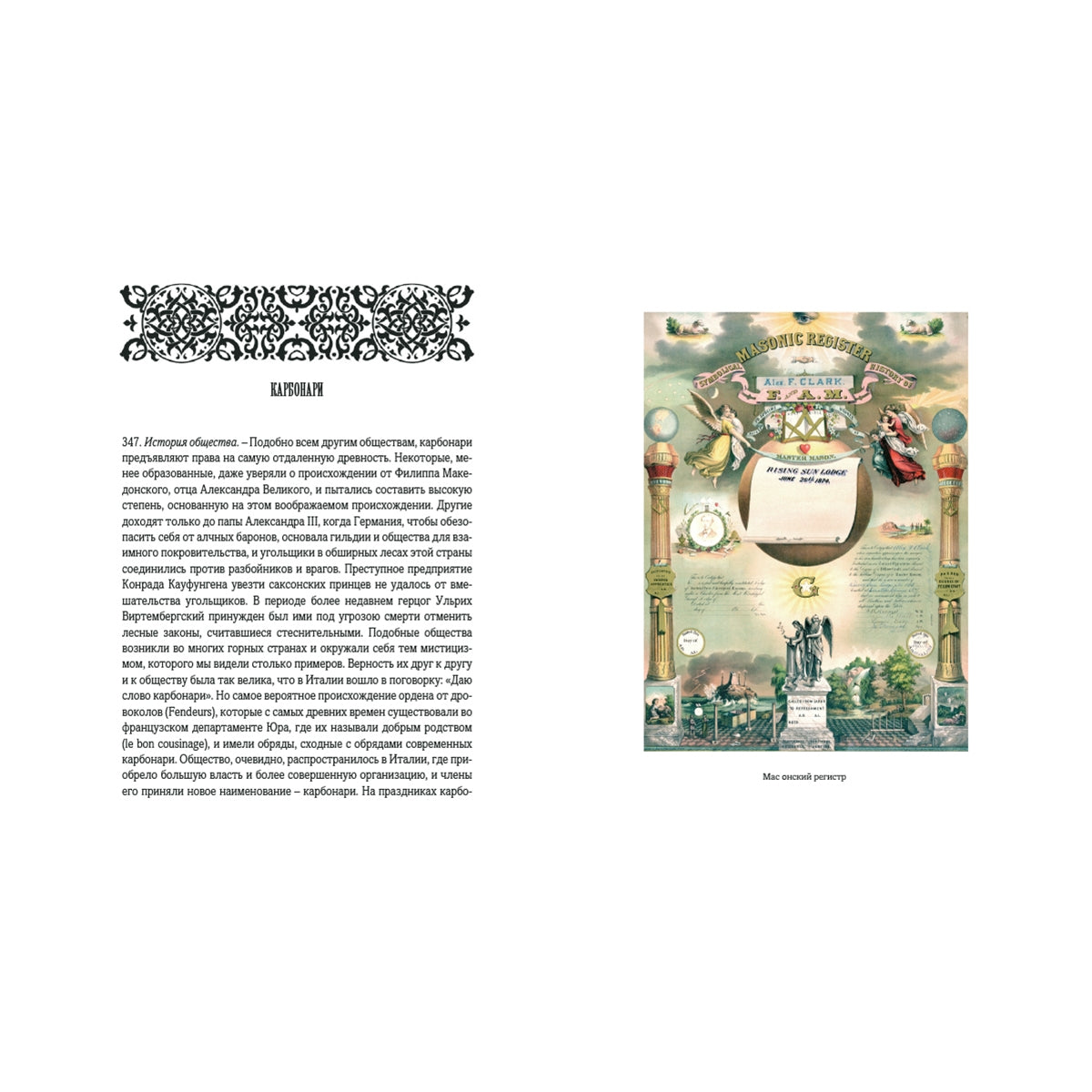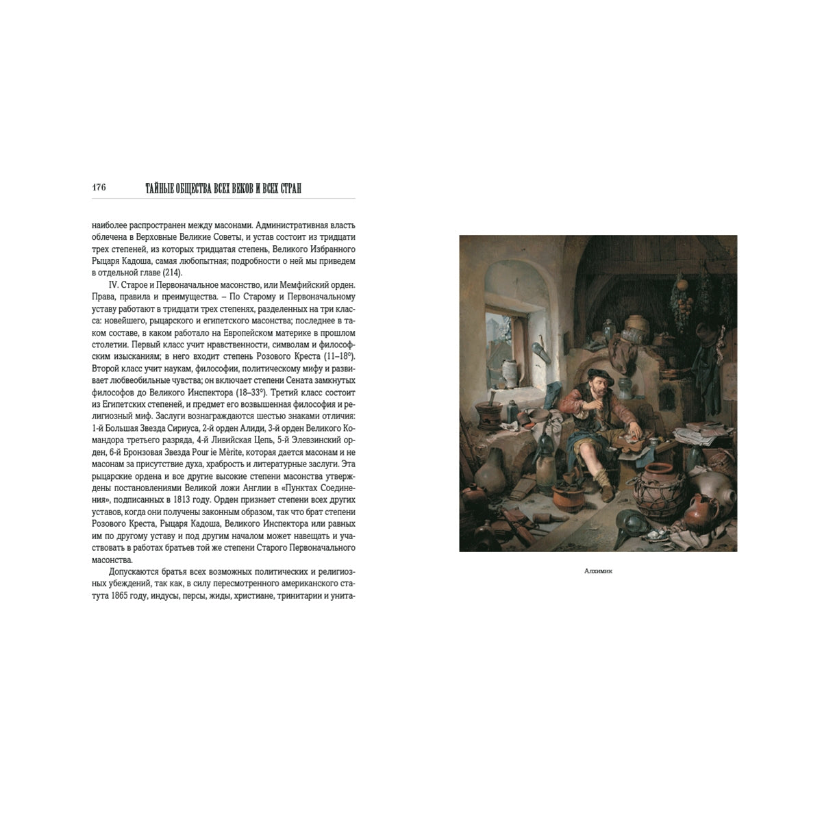 Handling time: 24 days Богато иллюстрированное подарочное издание в кожаном переплете с углубленным тиснением (красочное плоскоуглубленное изображение), на дизайнерской бумаге, с торшонированным окрашенным обрезом.Эта книга рассказывает об истории возникновения, развития и деятельности тайных обществ c древних времен и до середины 19 века. Масоны и тамплиеры, алхимики и розенкрейцеры, каббалисты и гностики — практически все известные мировой истории тайные общества описаны в фундаментальном труде Чарльза Уильяма Гекерторна, опубликованном в 1874 году. Автор считал свою книгу «самым ясным отчетом о тайных обществах» c подробной классификацией и описанием целей, задач, обрядов и правил посвящения.