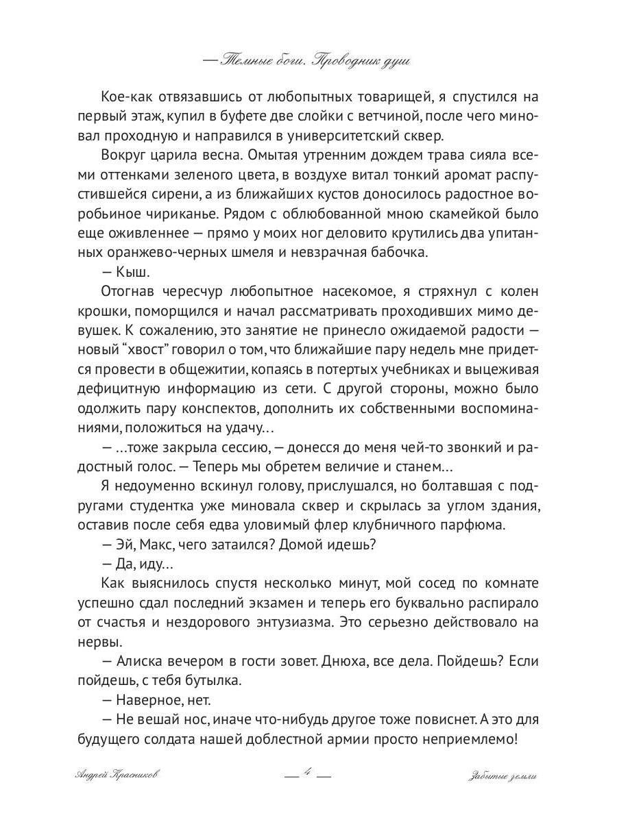 Handling time: 19 days Автор: Красников Андрей, «Темные боги. Проводник душ»: Оказаться в другой реальности, узнать, что ты являешься носителем редкого магического дара и уверенно ступить на ведущий к бесконечному развитию путь - казалось бы, что может быть лучше этой судьбы? Увы, но яркая вывеска слишком часто прячет за собой неприглядное содержимое. И обычному студенту-первокурснику, по неосмотрительности согласившемуся пойти на службу к одному из богов чужого мира, придется вплотную столкнуться с темной стороной обещанного ему величия. Смерти, предательства, ненависть окружающих... здесь для того чтобы остаться самим собой, нужно измениться. Очень сильно измениться.