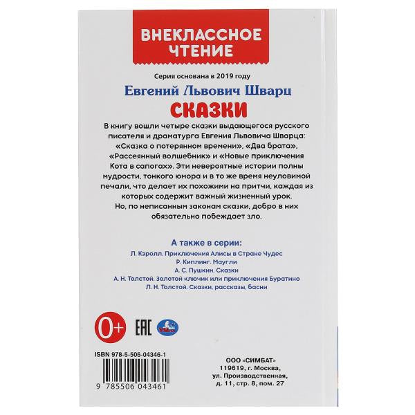 "УМКА". СКАЗКИ. ЕВГЕНИЙ ШВАРЦ (ВНЕКЛАССНОЕ ЧТЕНИЕ). ТВЕРДЫЙ ПЕРЕПЛЕТ. БУМАГА ОФСЕТНАЯ в кор.24шт