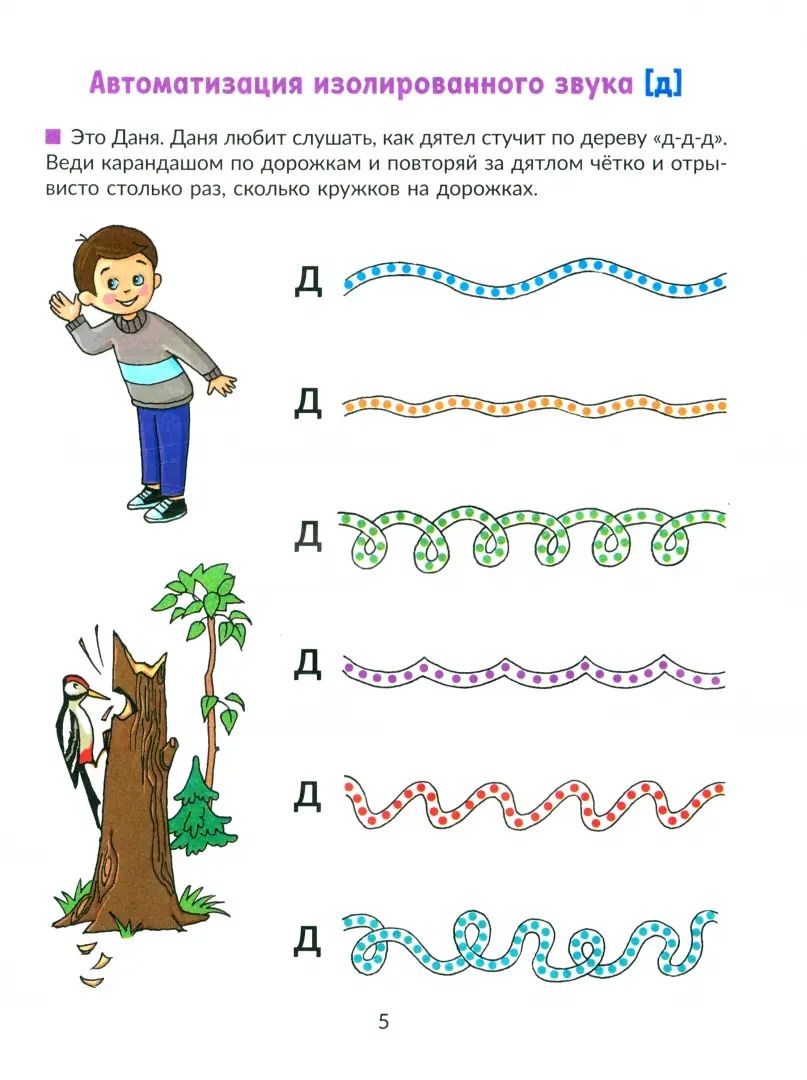 Handling time: 14 days Данное пособие поможет ввести в речь ребенка твердые звуки раннего онтогенеза Д и Т. При этом в нем не используются сложные звуки Р и Рь. Вначале звук закрепляется изолированно, затем в слогах, в словах, во фразах и предложениях и только потом в текстах. Яркие иллюстрации, игровые задания и милые сквозные персонажи увлекут малыша и сделают занятия веселыми и интересными. Для детей, родителей и логопедов.