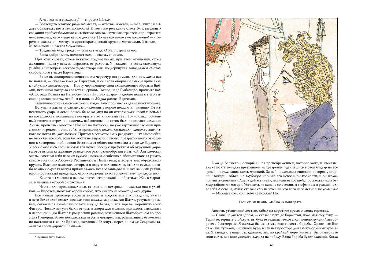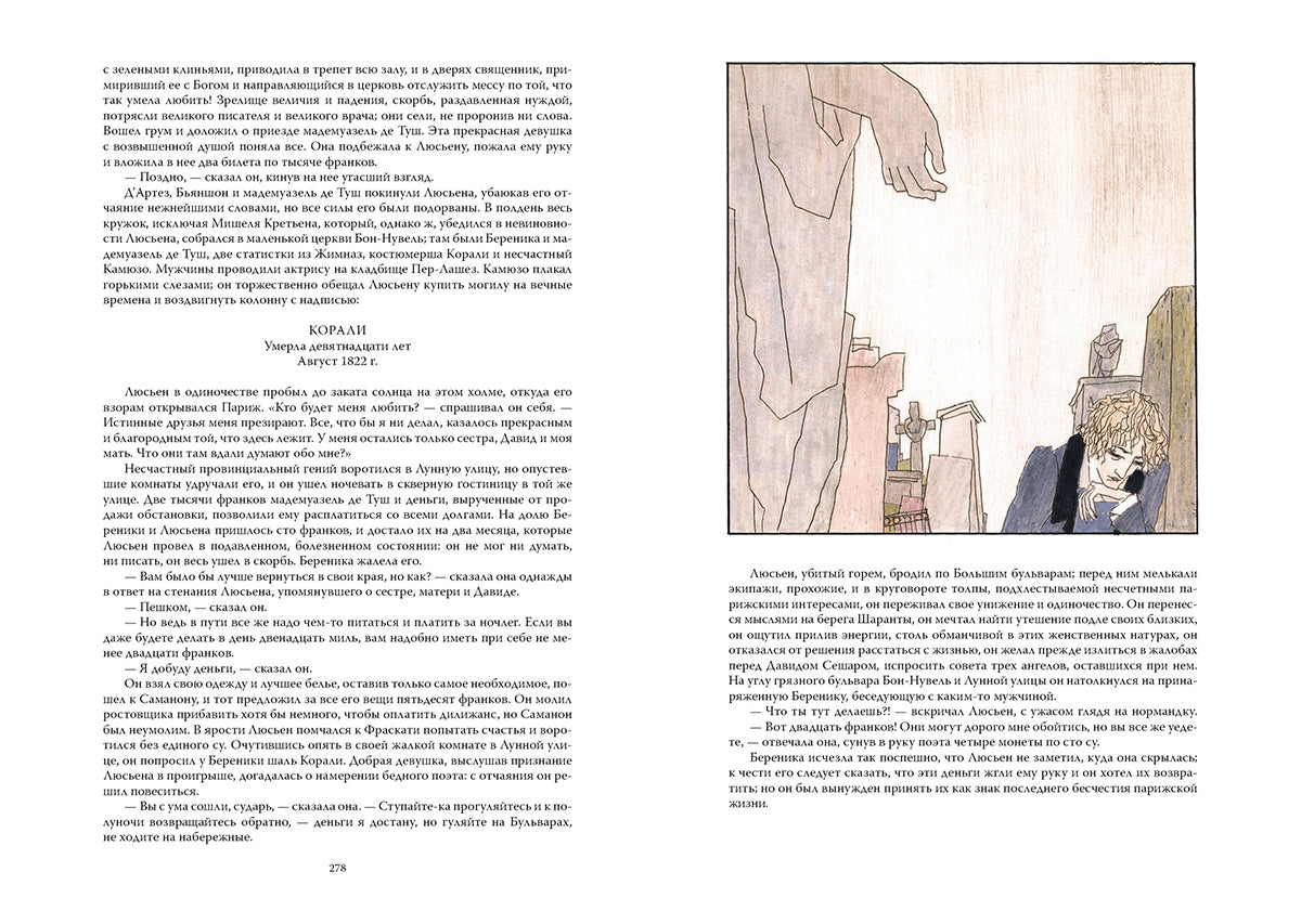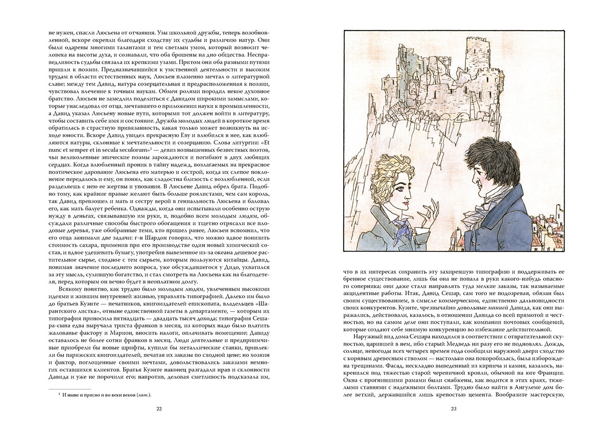 Handling time: 19 days «Утраченные иллюзии» — один из литературных шедевров Оноре де Бальзака. С присущими ему меткостью, реалистичностью и изрядной долей сатиры автор изображает царящие в его эпоху «нравы в литературном мире и книжном деле». Скудоумие провинциальной буржуазии, бездушность парижского высшего света, лицемерие, цинизм и продажность столичных журналистов и писателей — с ними главный герой, молодой красавец-поэт Люсьен, мечтающий о литературной славе, встретится лицом к лицу. Иллюстрации Михаила Майофиса тонко и точно вторят роману Бальзака, воплощая в ярких образах настроение и характеры героев.