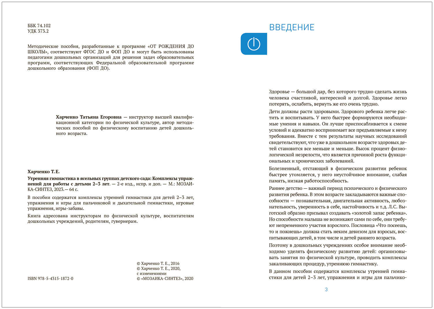 Handling time: 14 days Утренняя гимнастика в детском саду. 2–3 года. Комплексы упражнений. ФГОС. ФОП Пособие издано в рамках учебно-методического комплекта к программе «ОТ РОЖДЕНИЯ ДО ШКОЛЫ». В пособии содержатся комплексы упражнений утренней гимнастики для детей 2-3 лет, упражнения и игры для пальчиковой и дыхательной гимнастики, игровые упражнения, игры-забавы. Представленные материалы помогут инструкторам по физической культуре, воспитателям дошкольных учреждений, родителям, гувернерам организовать разнообразную двигательную деятельность детей раннего возраста, способствующую...