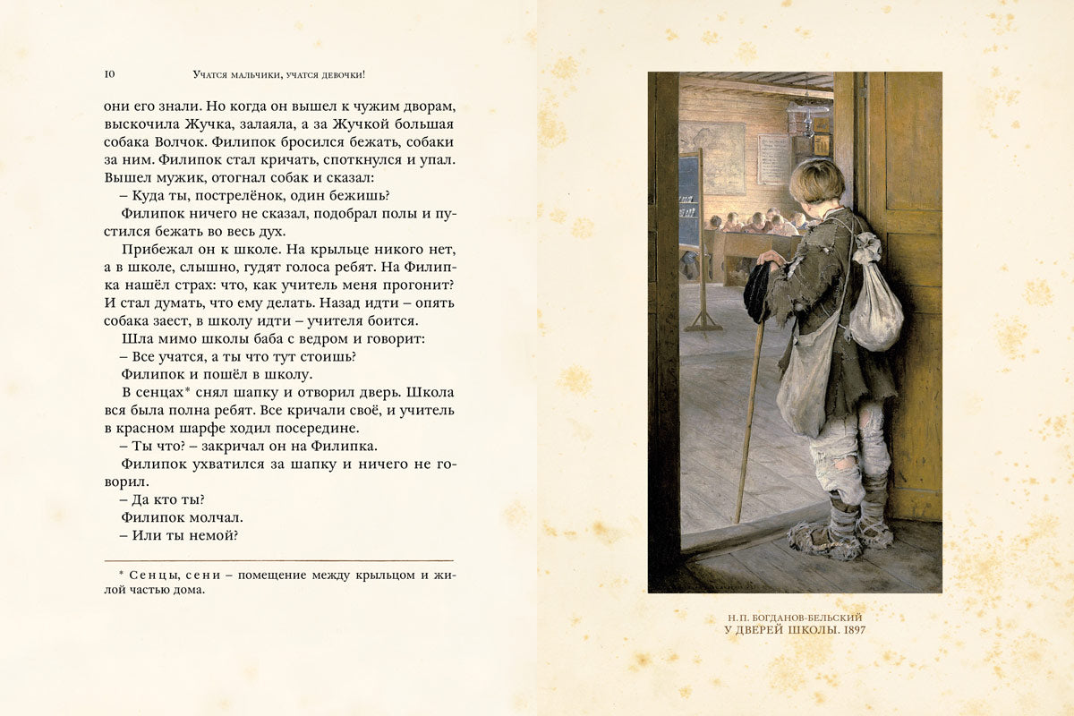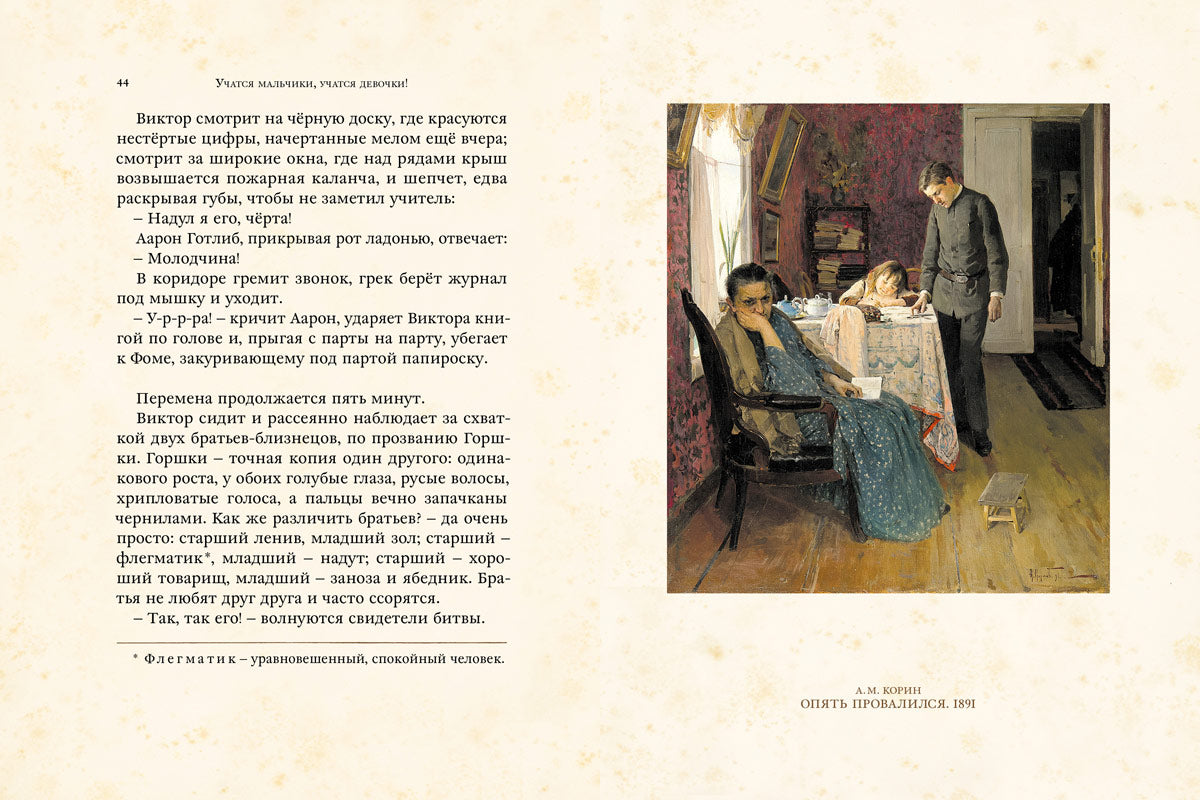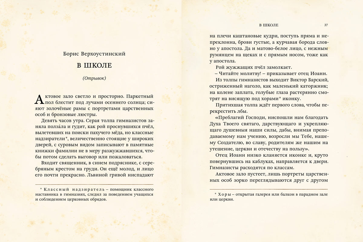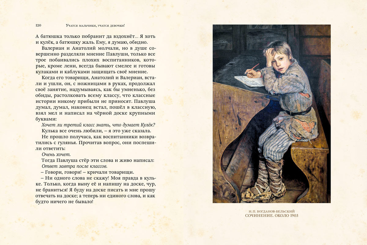 Русские писатели не могли не описать свои школьные впечатления. Многое тогда было по-другому: занятия начинались с молебна, за учениками присматривали классные надзиратели и дамы, а оценки ставили то по 3-, то по 12-балльной системе. Но во все времена школьников интересовало одно и то же. Что за новенькая пришла в класс? Как дать отпор хулигану однокласснику? И почему время на одних уроках тянется бесконечно, а на других — пролетает незаметно?