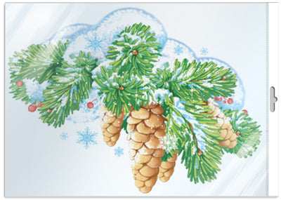 *ФМ1-15272 ПЛАКАТ ВЫРУБНОЙ А4 В ПАКЕТЕ. Ветка еловая с шишками (двухсторонний, в индивидуальной упаковке, с европодвесом и клеевым клапаном)