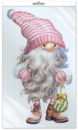 *ФМ1-16565 ПЛАКАТ ВЫРУБНОЙ А4 В ПАКЕТЕ. Гномик с елочной игрушкой (двухсторонний, ВД-лак, в индивидуальной упаковке, с европодвесом и клеевым клапаном)