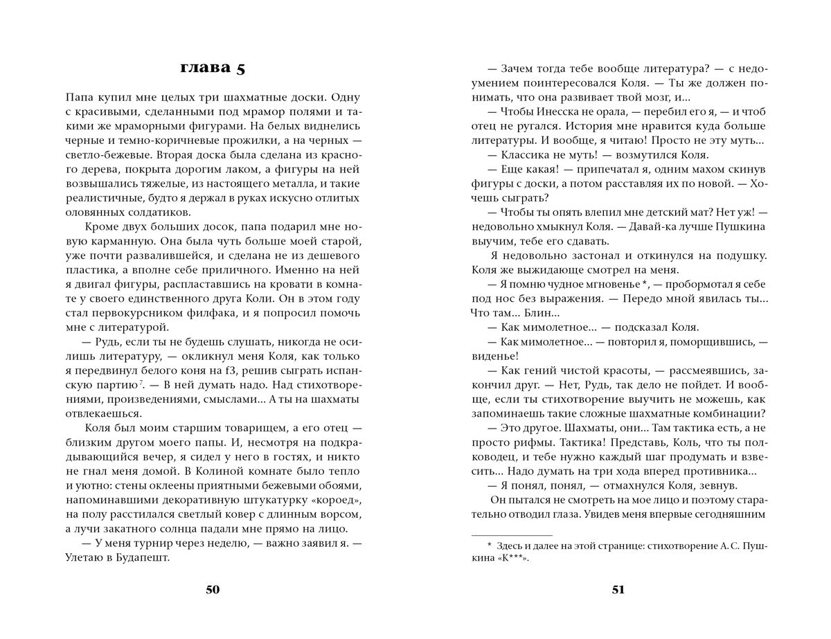 Handling time: 19 days "Все, чем живет Рудольф, — это шахматы. Игра помогает ему сбежать в мир фигур и клеток, пряча от тирании отца. Всеволод контролирует каждый шаг сына, тратит огромные деньги на турниры и тренировки. Рудольф зависим от него — и морально, и финансово. Он не приспособлен к жизни и живет в разрушающей обстановке, не имея сил из нее вырваться.