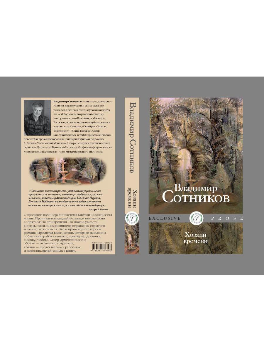 Handling time: 19 days Автор: Сотников Владимир, «Хозяин времени»: С пролитой водой сравнивается в Библии человеческая жизнь. Проливается каждый ее день, и невозможно собрать эти капли времени. Но можно увидеть в привычной повседневности отражение скрытого и главного ее смысла. Это и происходит с героем романа «Пролитая вода», жизнь которого насыщена событиями: работа в школе, приезд из деревни в Москву, любовь, Север. Архетипические образы — охотник, смотритель, хозяин — представлены в рассказах и повестях, включенных в книгу.
