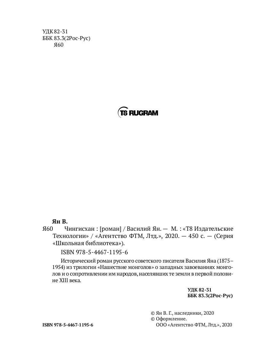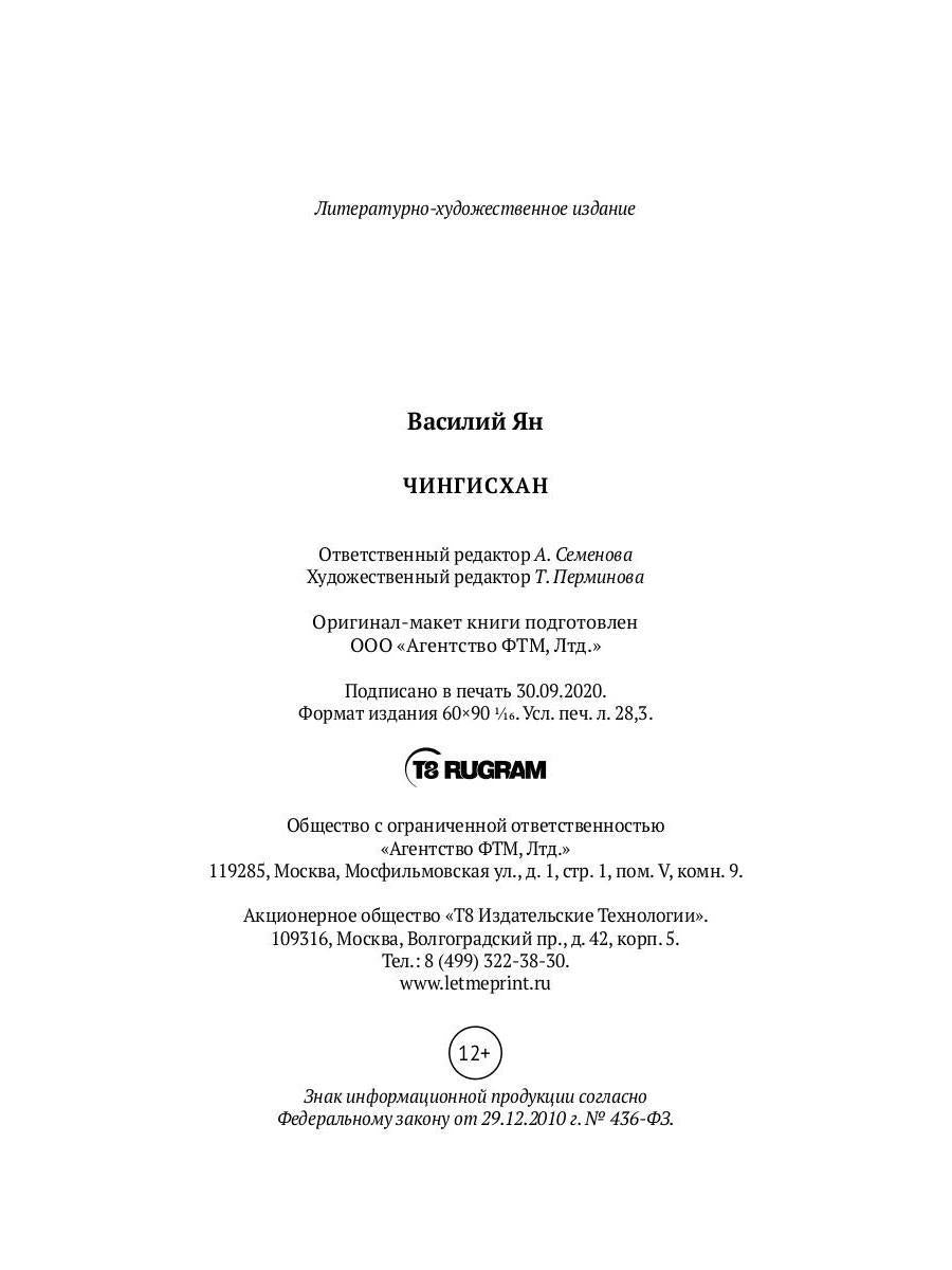 Handling time: 19 days Автор: Ян Василий, «Чингисхан»: «Чингисхан» (Василий Ян) — первый роман из трилогии «Нашествие монголов» о западных завоеваниях монголов и о сопротивлении им народов, населявших те земли в первой половине XIII века. Роман был удостоен Сталинской премии (1941). Василий Ян (1875–1954) — русский советский писатель, публицист, поэт и драматург, автор популярных исторических романов.