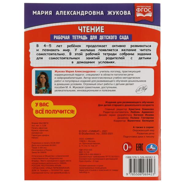 Handling time: 24 days Книга "Чтение. Жукова М.А. Рабочая тетрадь для детского сада. Средняя группа .200х260 мм Умка в кор.40шт". Издательство: Умка. Стандарт: 40. Размер: 0.004. Страна производитель: РОССИЯ.