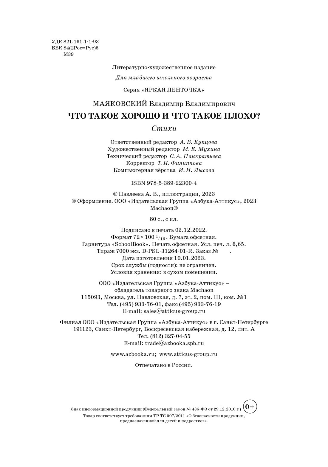 Что такое хорошо и что такое плохо? Особое место в творчестве Владимира Маяковского занимают произведения для детей. Поэт непринуждённо и на равных разговаривает с юными читателями на важные для них темы. Весёлые и озорные стихотворения ненавязчиво учат ребят быть честными, добрыми, отличать хорошее от плохого и стремиться к знаниям. А благодаря музыкальности и необычному ритму легко запоминаются и остаются в памяти на долгие годы.